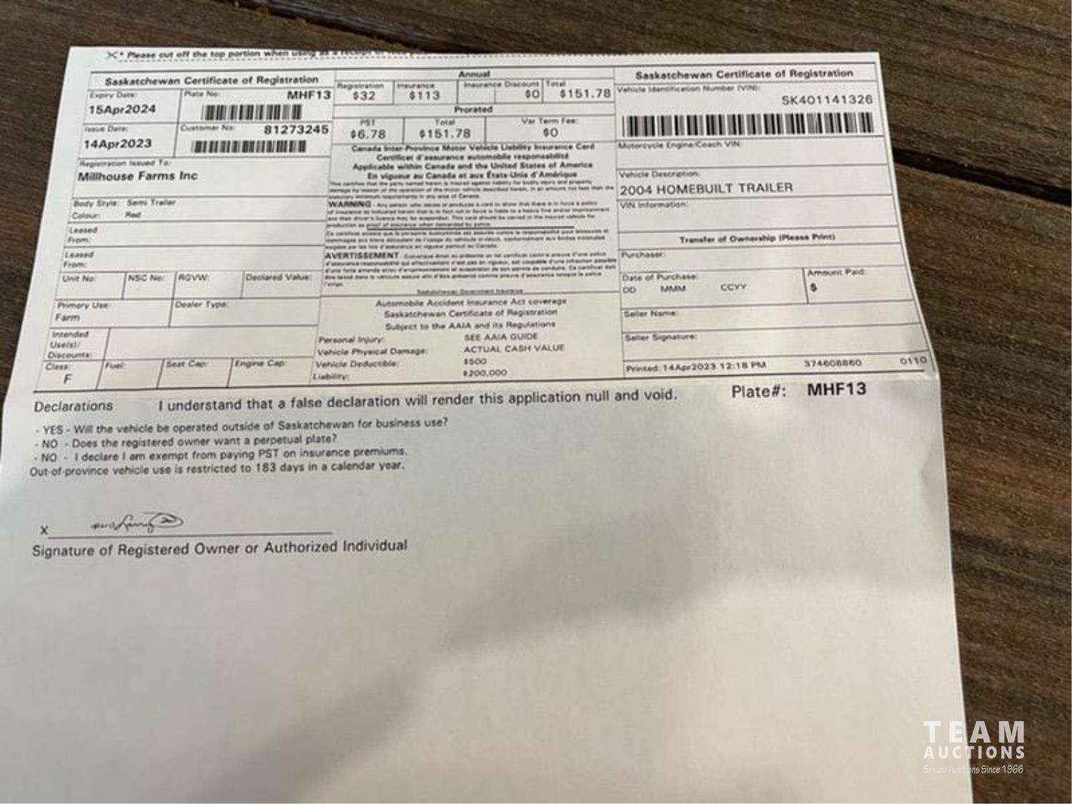 Trailers Equipment Realignment for Millhouse Farms Inc. – Cut Knife, SK – Nov 10, 2023