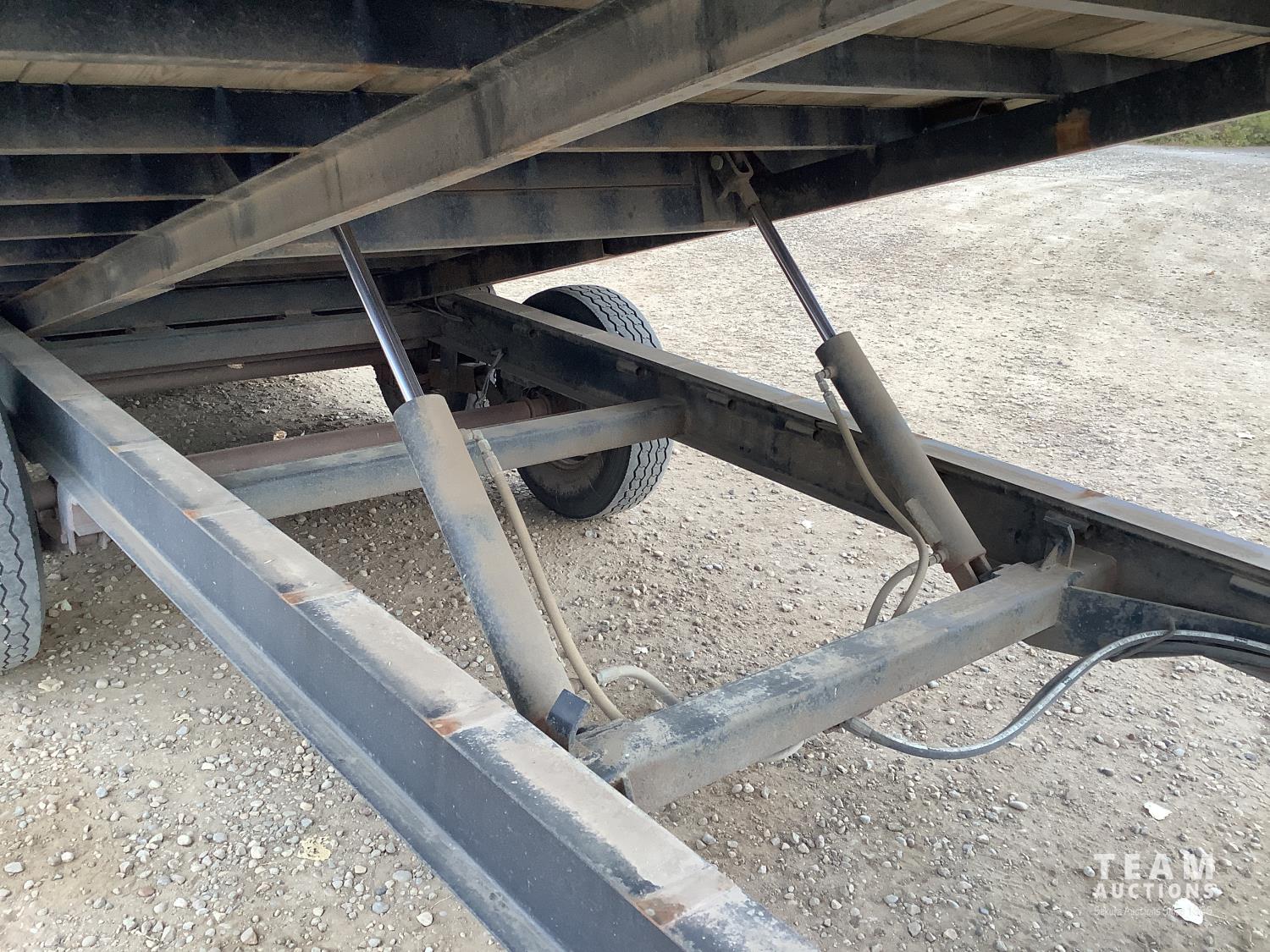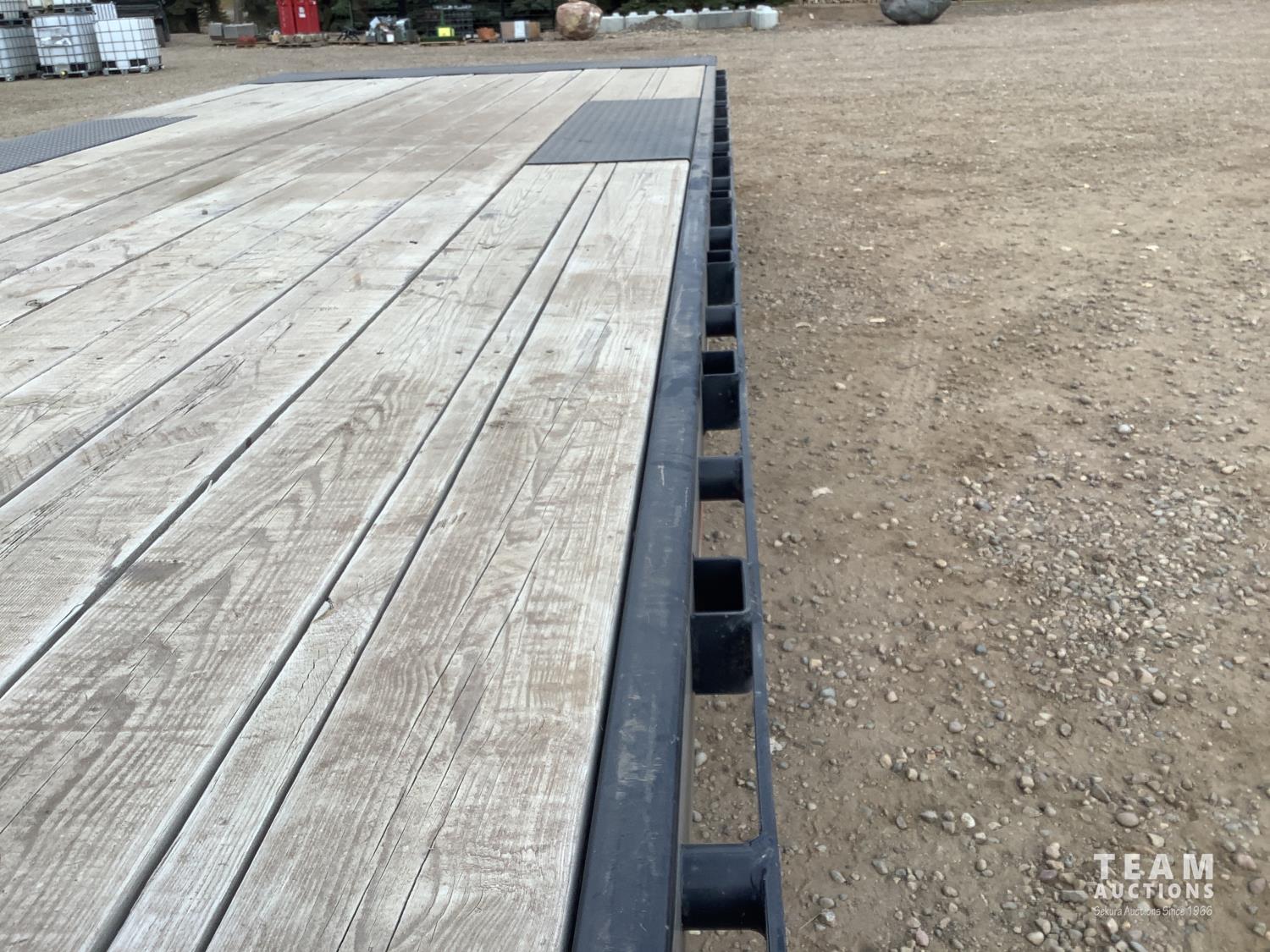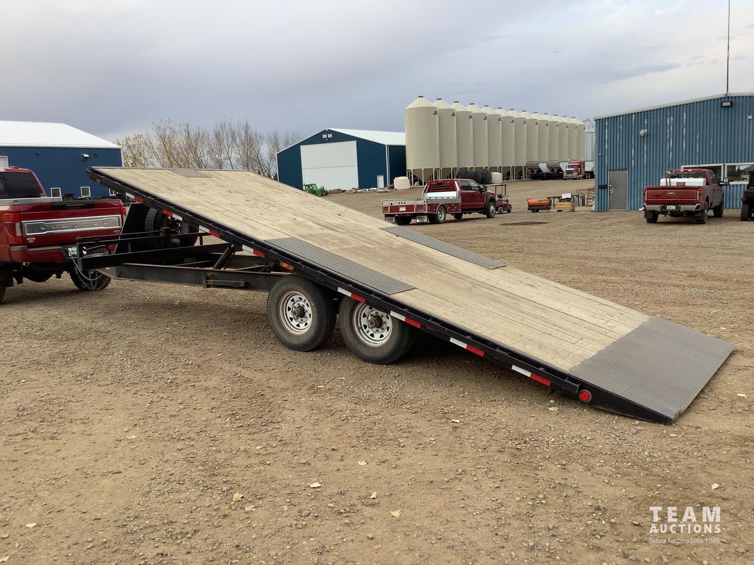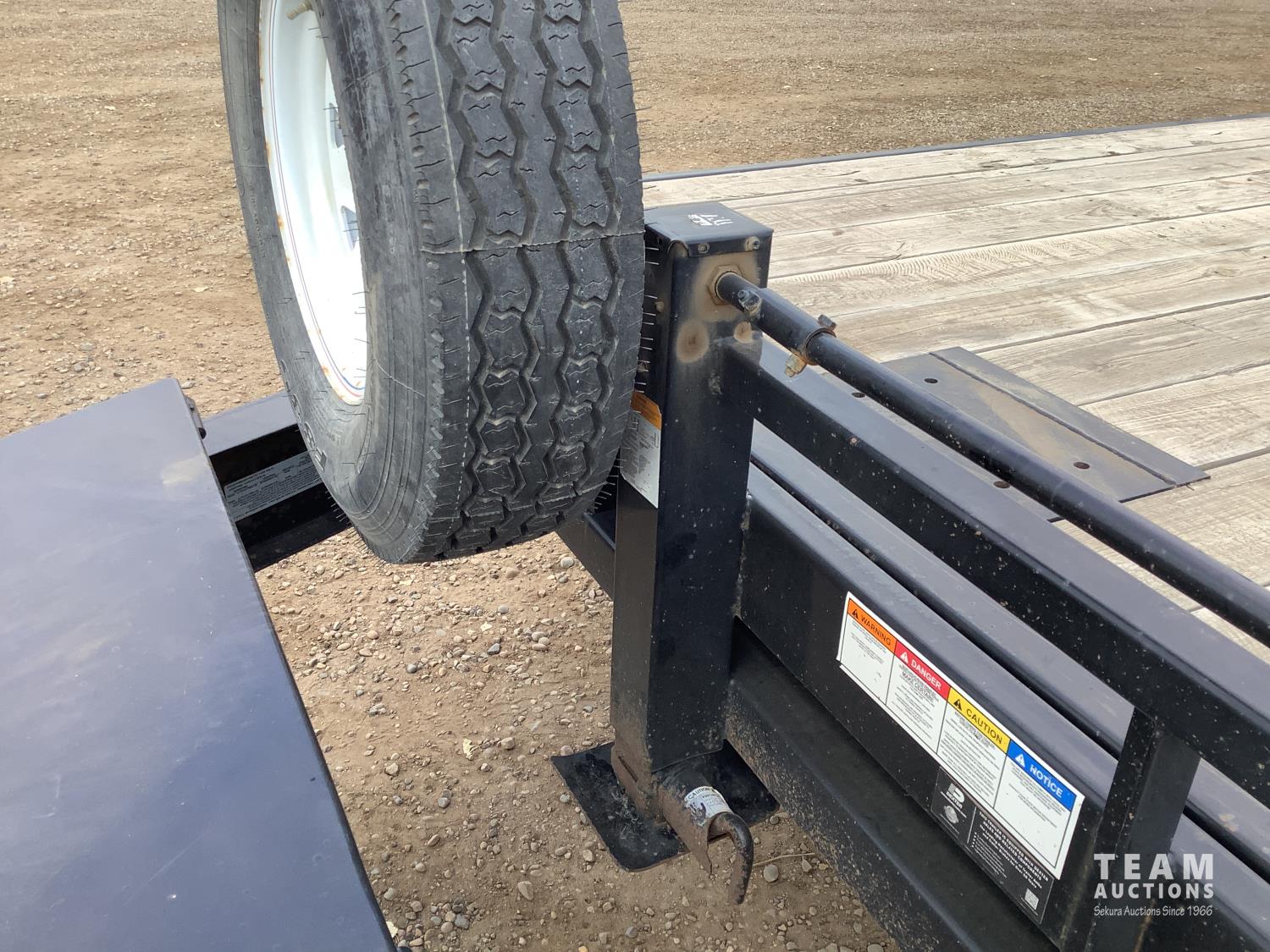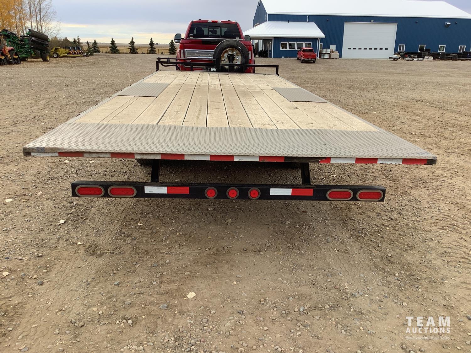 102 inch wide deck, 20 ft tilt deck, wood deck, electric brakes, spring suspension, rub rails, stake pockets, LED lights, pintle hitch, 7000 lb axles, 235/80R16 tires