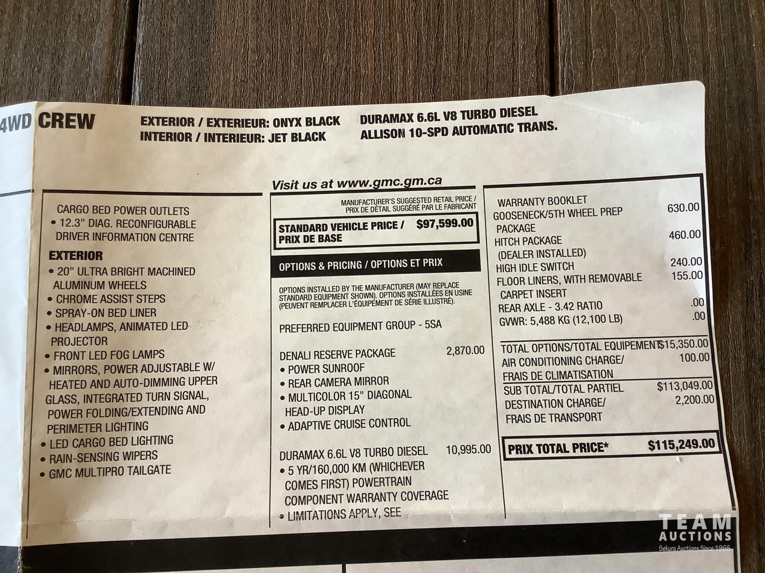 6.6 L, V8, diesel, leather, P/W, P/L, A/C, navigation system, heated mirrors, running boards, Allison 10 speed transmission, sunroof, rear camera, heads up display, adaptive cruise control, ceramic paint, 3M, mud flaps and aftermarket tires, 35X12.50-R20 tires