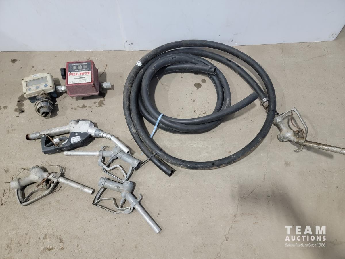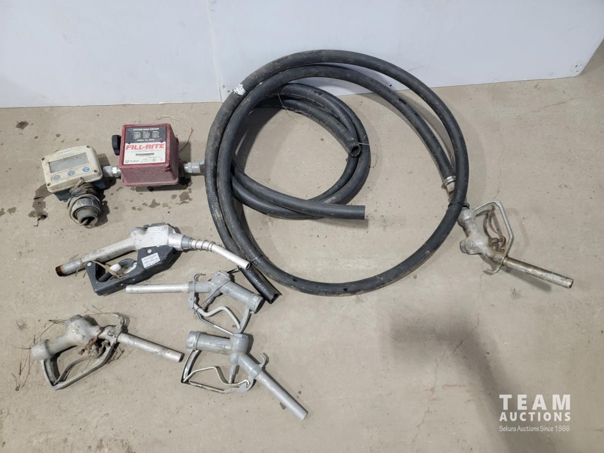 1379 1 Inch Hoses with Fuel Nozzle, (4) Fuel Nozzles, Fill-Rite Meter and Turbines Inc Flow Meter
