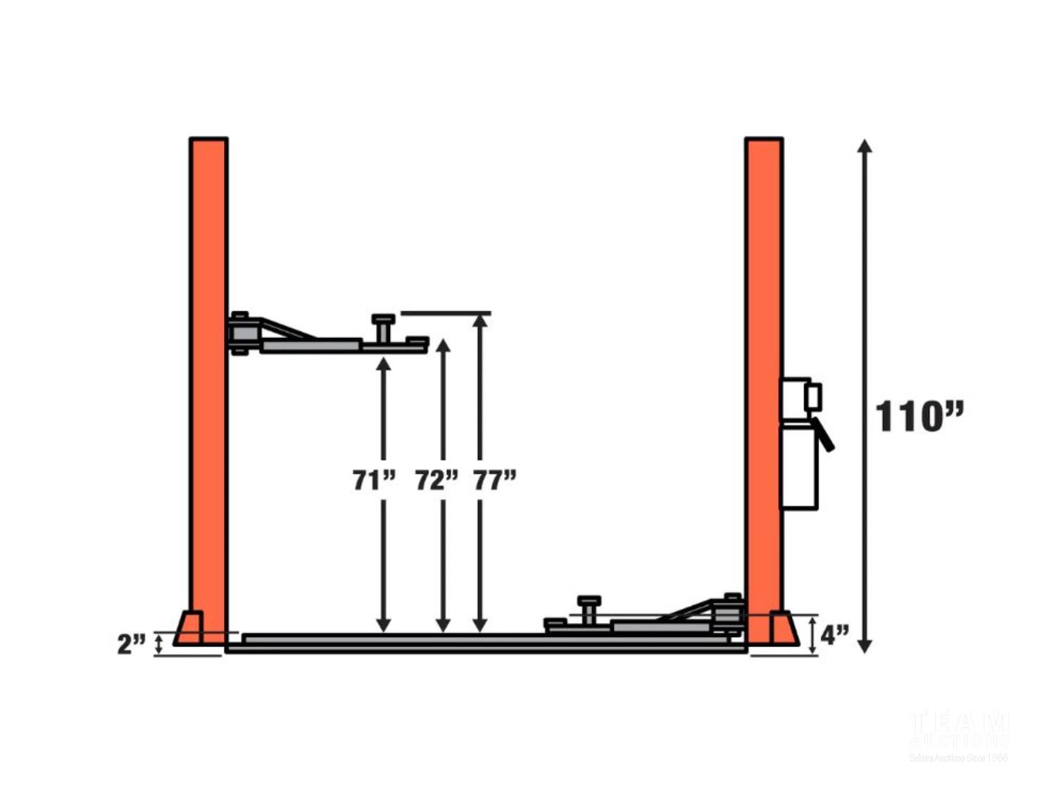 Symmetric Arms, 77 inch Lift Height, Dual-Point Lock Release