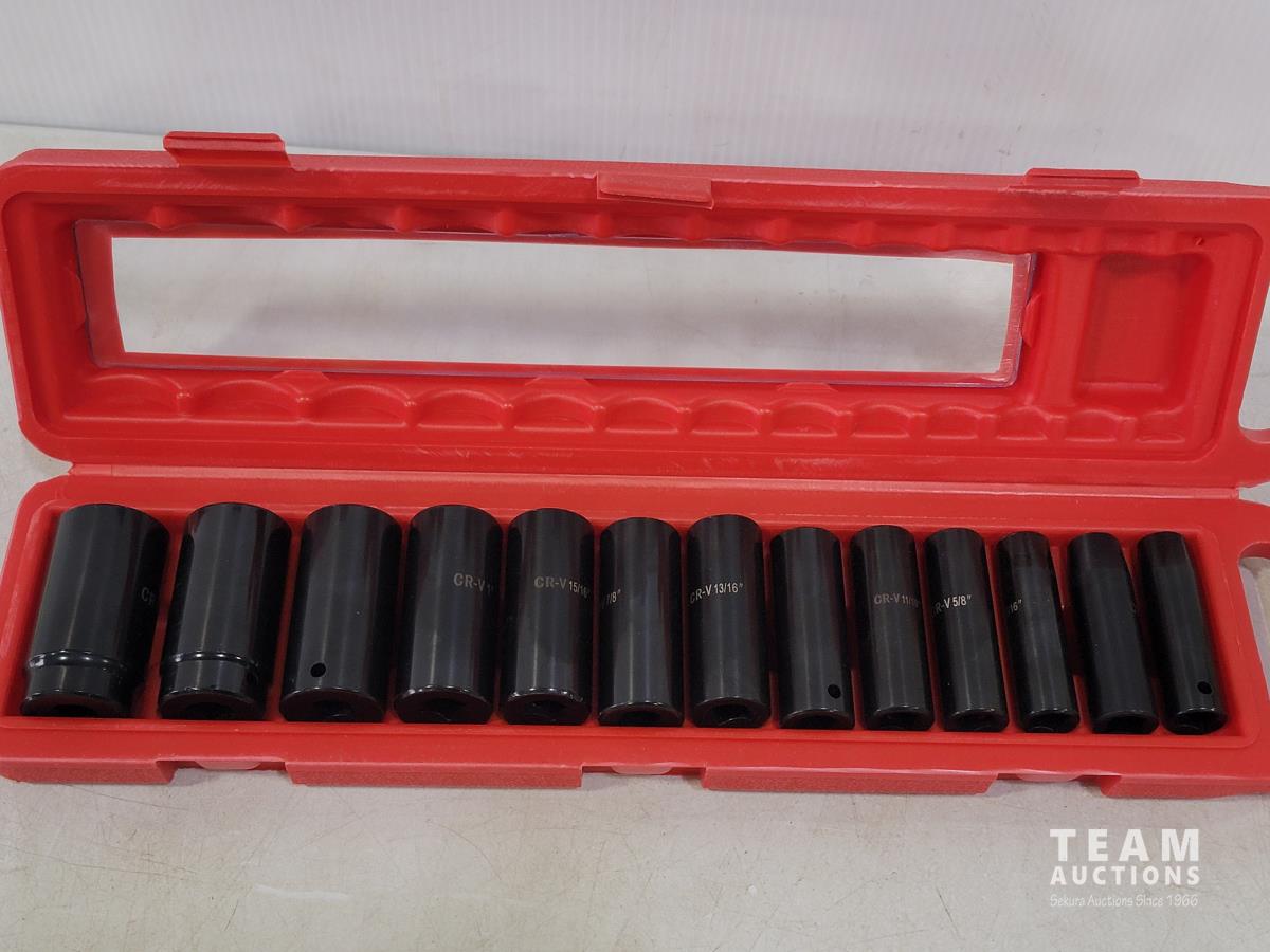 1536 13 Piece 1/2 Inch Drive SAE Deep Impact Socket Set (Unused)