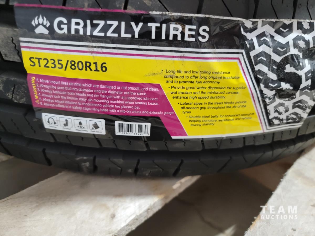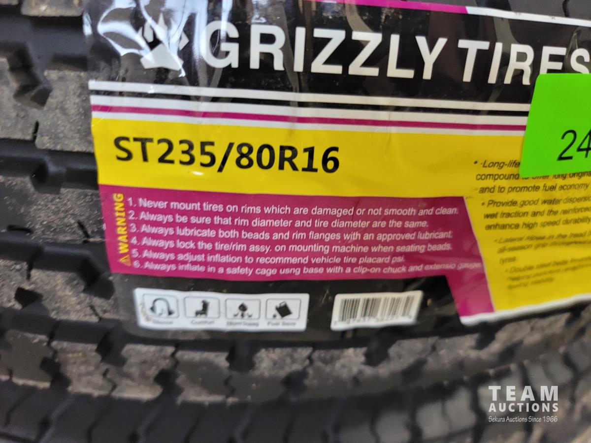 1215 (3) ST235/80R16 Grizzly Trailer Tires (Unused)