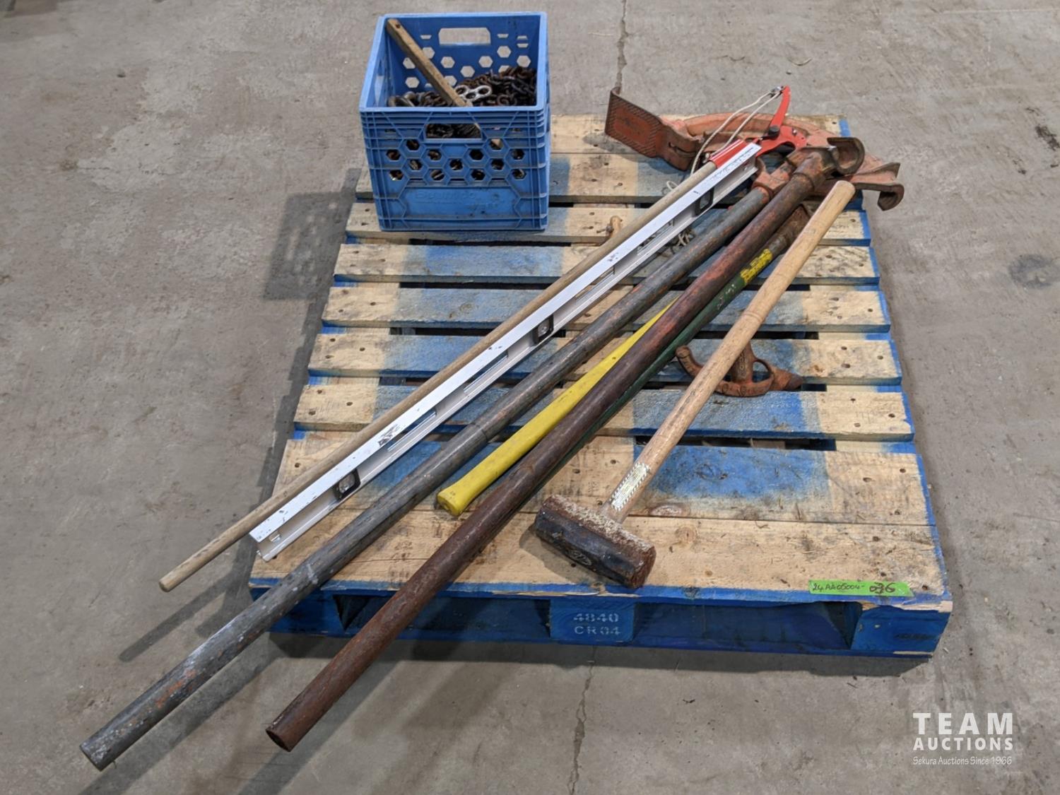 1300 (3) Various Size Tubing Benders, Sledge Hammer and Qty of Chains
