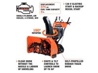 Self-Propelled Gas-Powered Snow Blower, Dual-Stage, Rubber Track, Heated Hand Grips, Electric Start, 21 inch Intake Height, LED Light