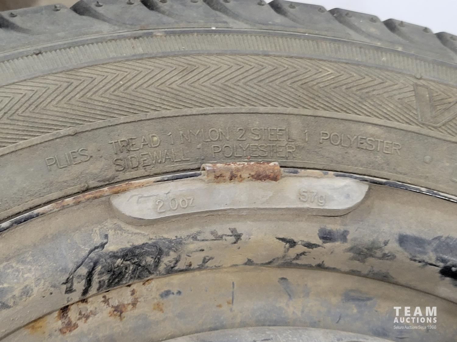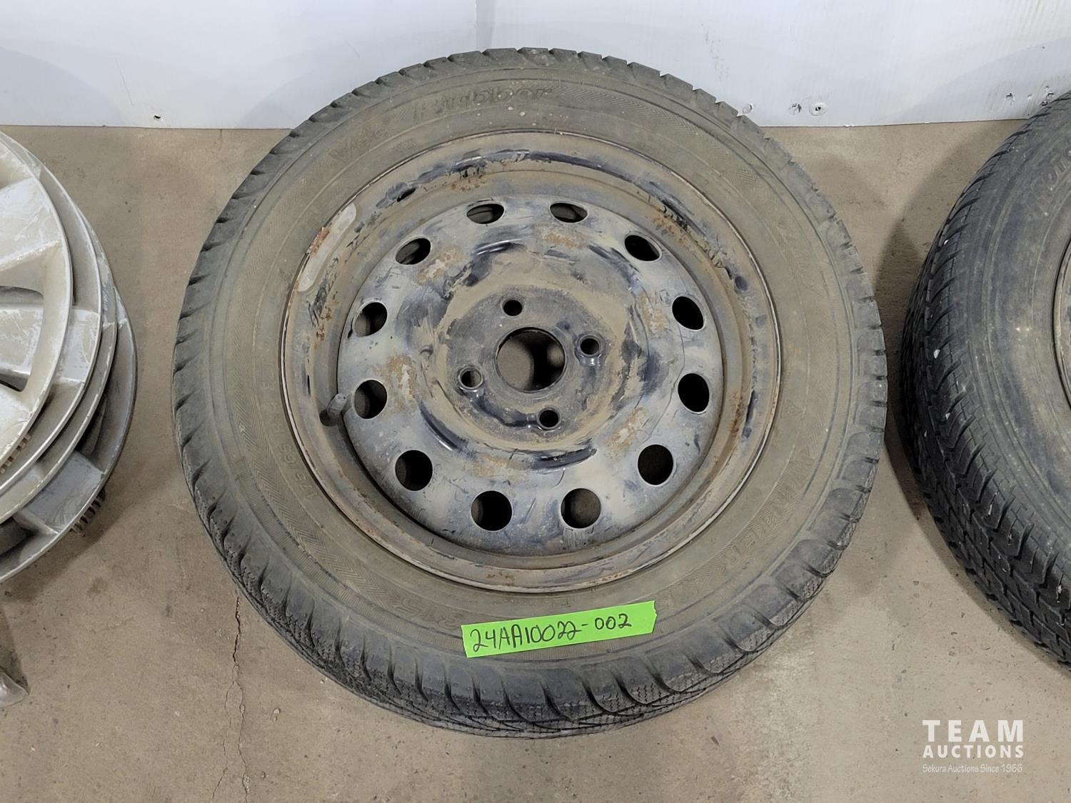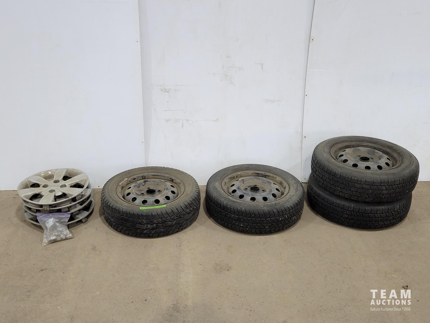 1309 (4) 14 Inch Tires with Four Bolt Rims and (4) Kia Hub Caps