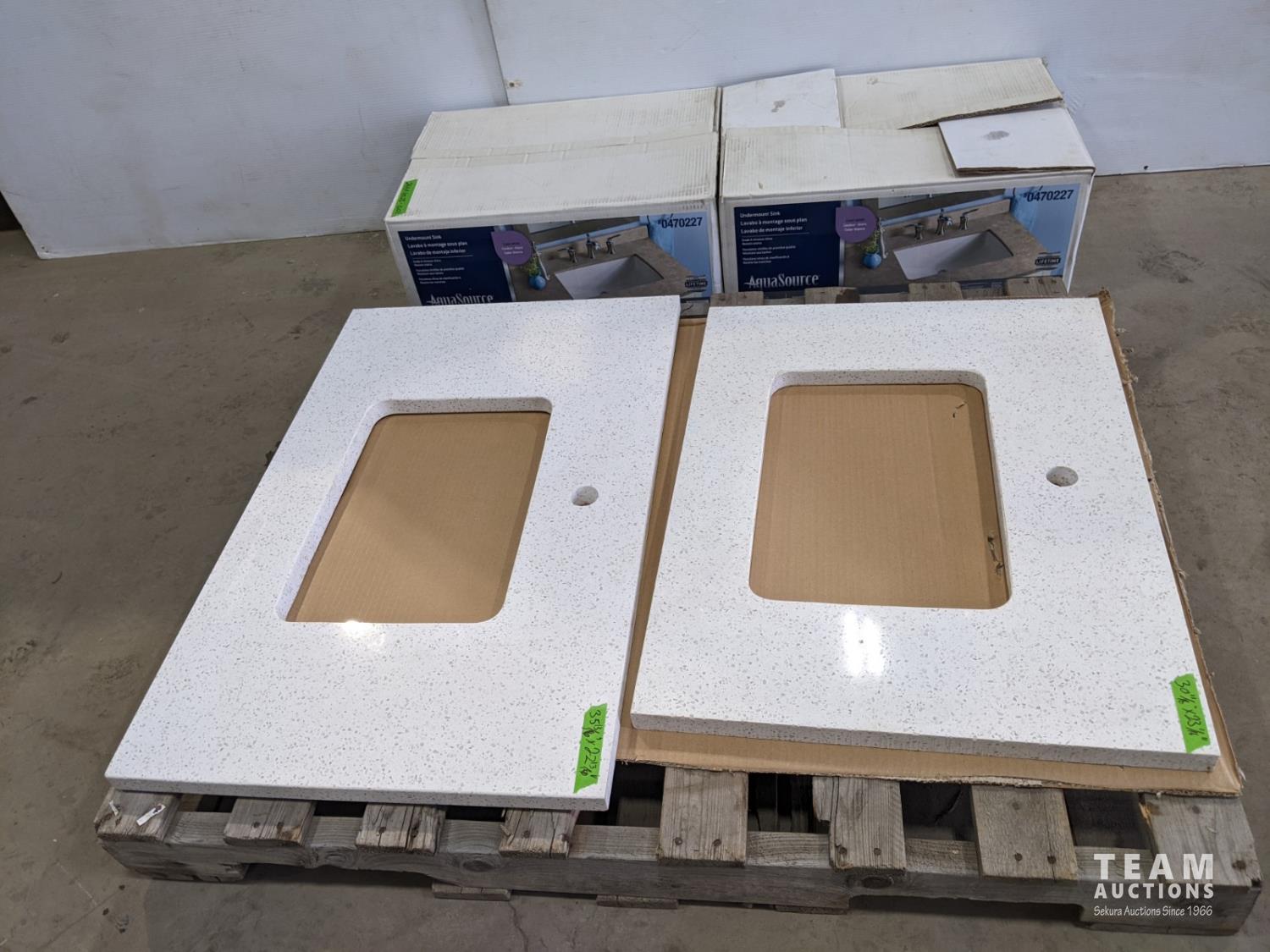 1458 (2) AquaSource Undermount Sinks and (2) Quartz Vanity Tops (Unused)