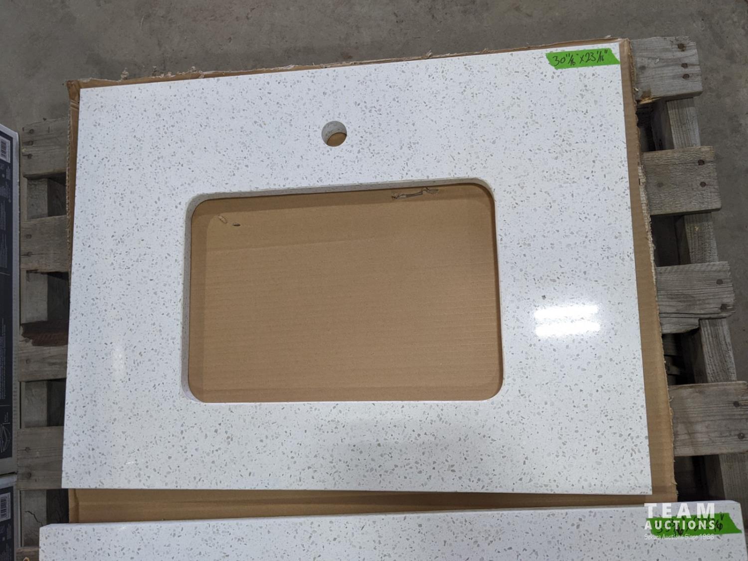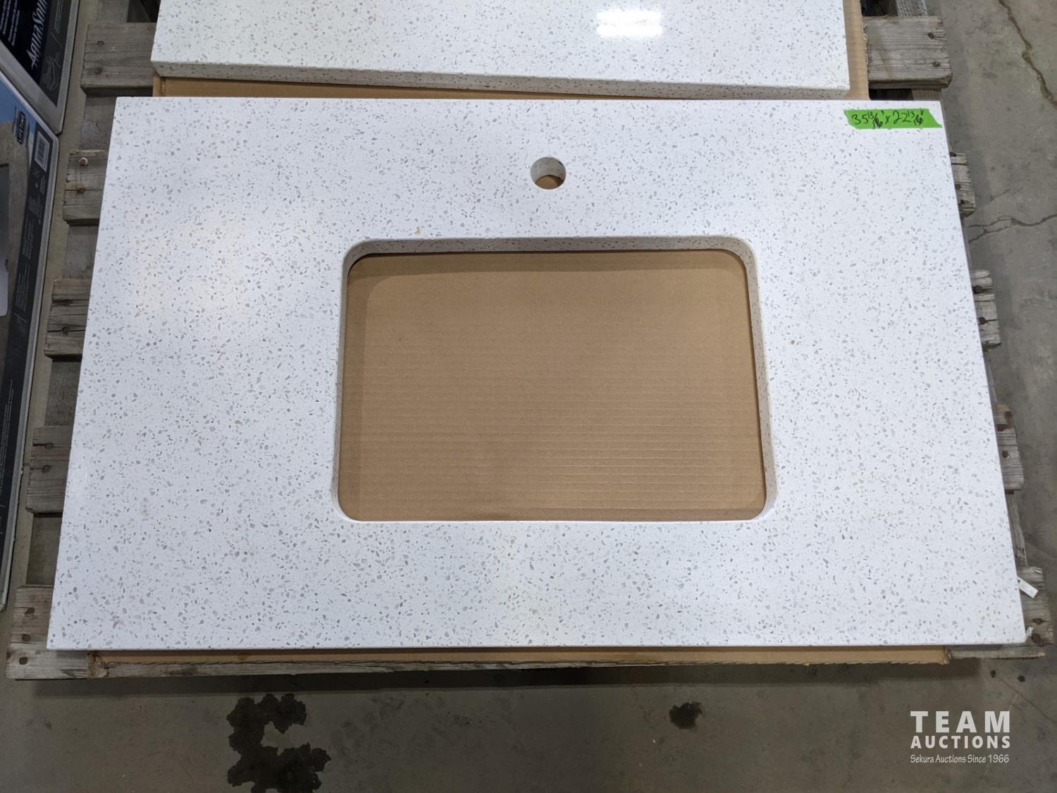 Vanity tops (1) 35-13/16 inch x 22-13/16 inch, and (1) 30-11/16 inch x 23-1/16 inch