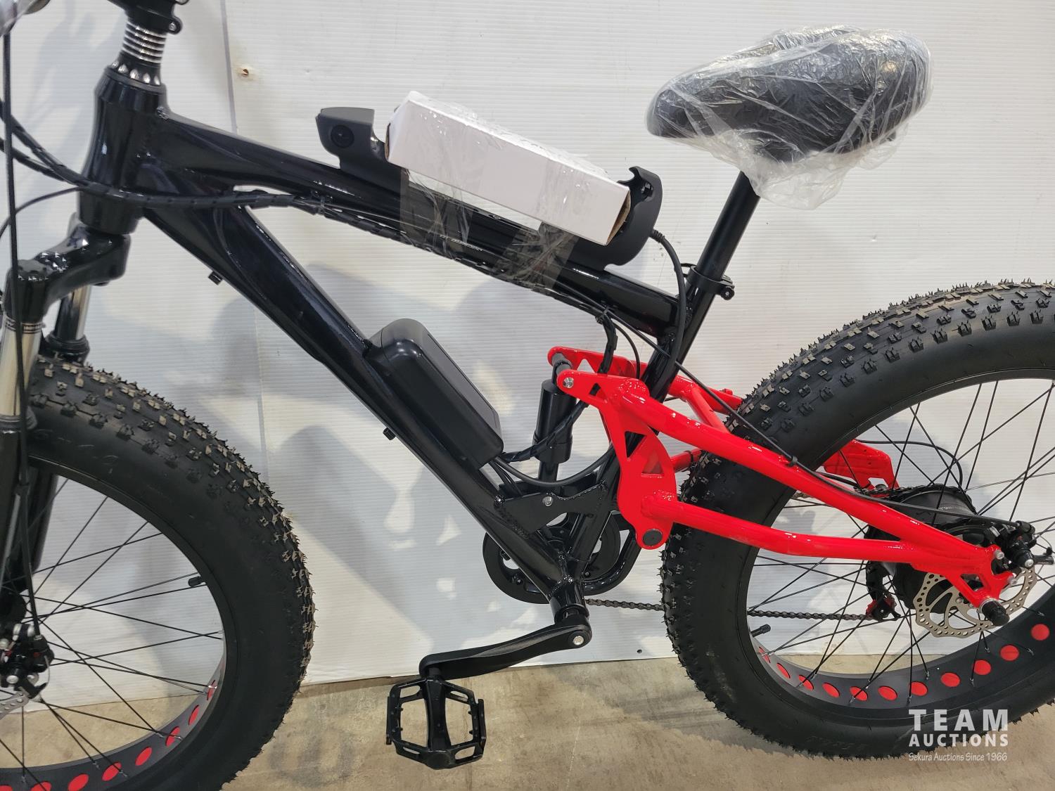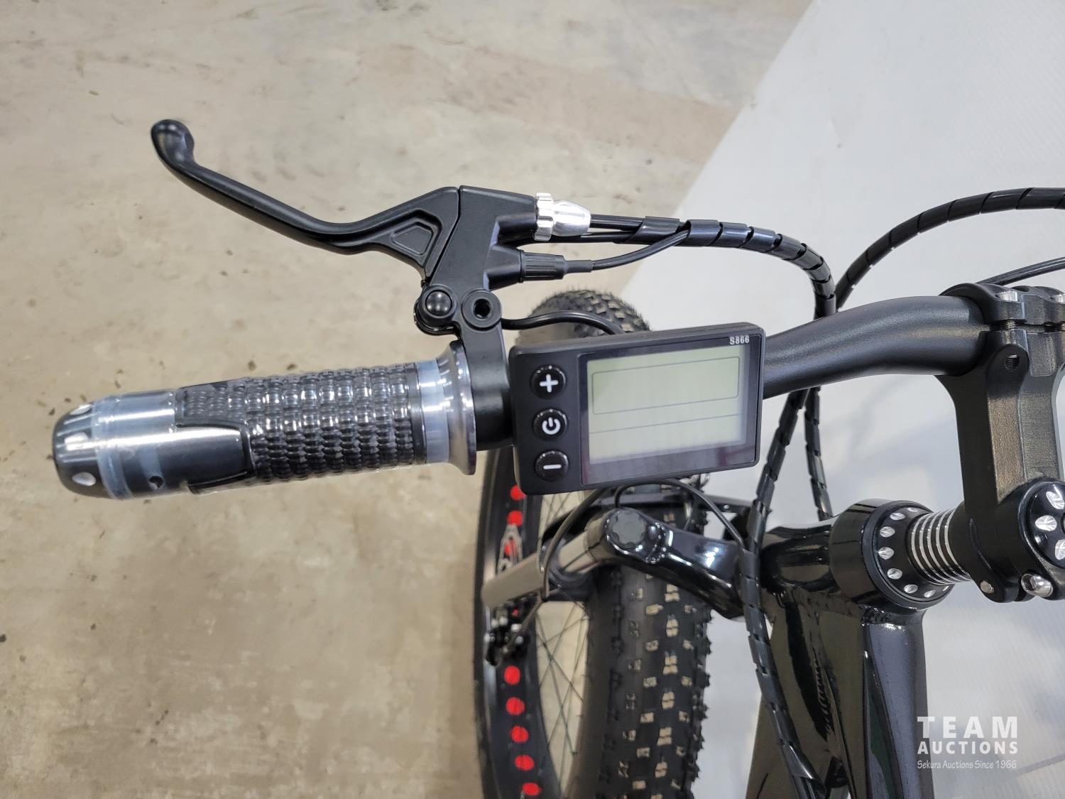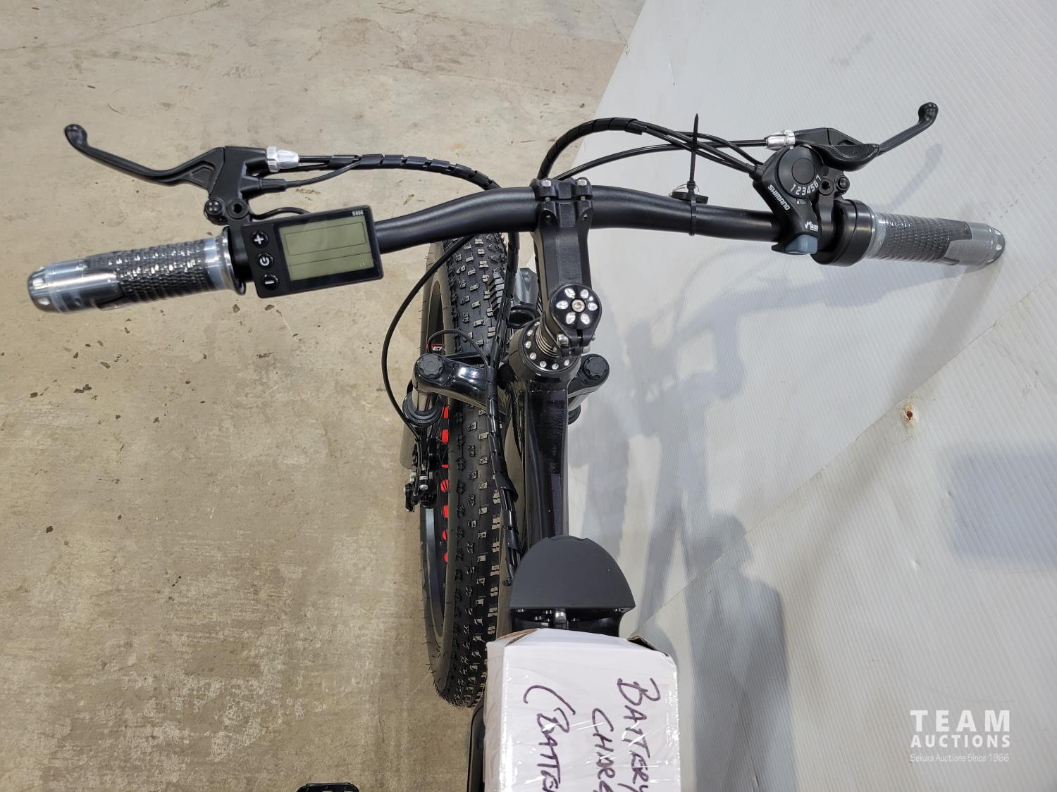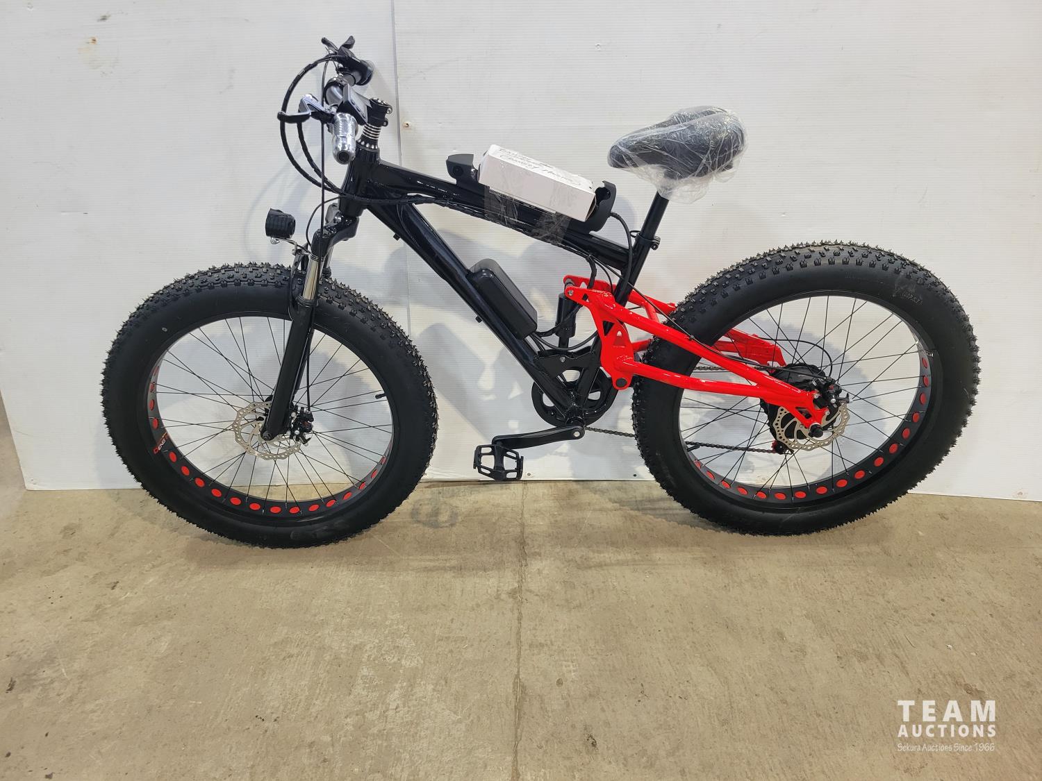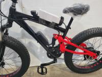 Shimano 7 Speed, Aluminum frame, alloy handlebars, seat tube, pedals, 48V 10AH battery, 750w brushless motor, front suspension, 3 gear speed, front suspension, rear and front disc brake, charge time: 6-8 hrs, max speed: 45 km/h, LCD display, 26X4 inch Tire