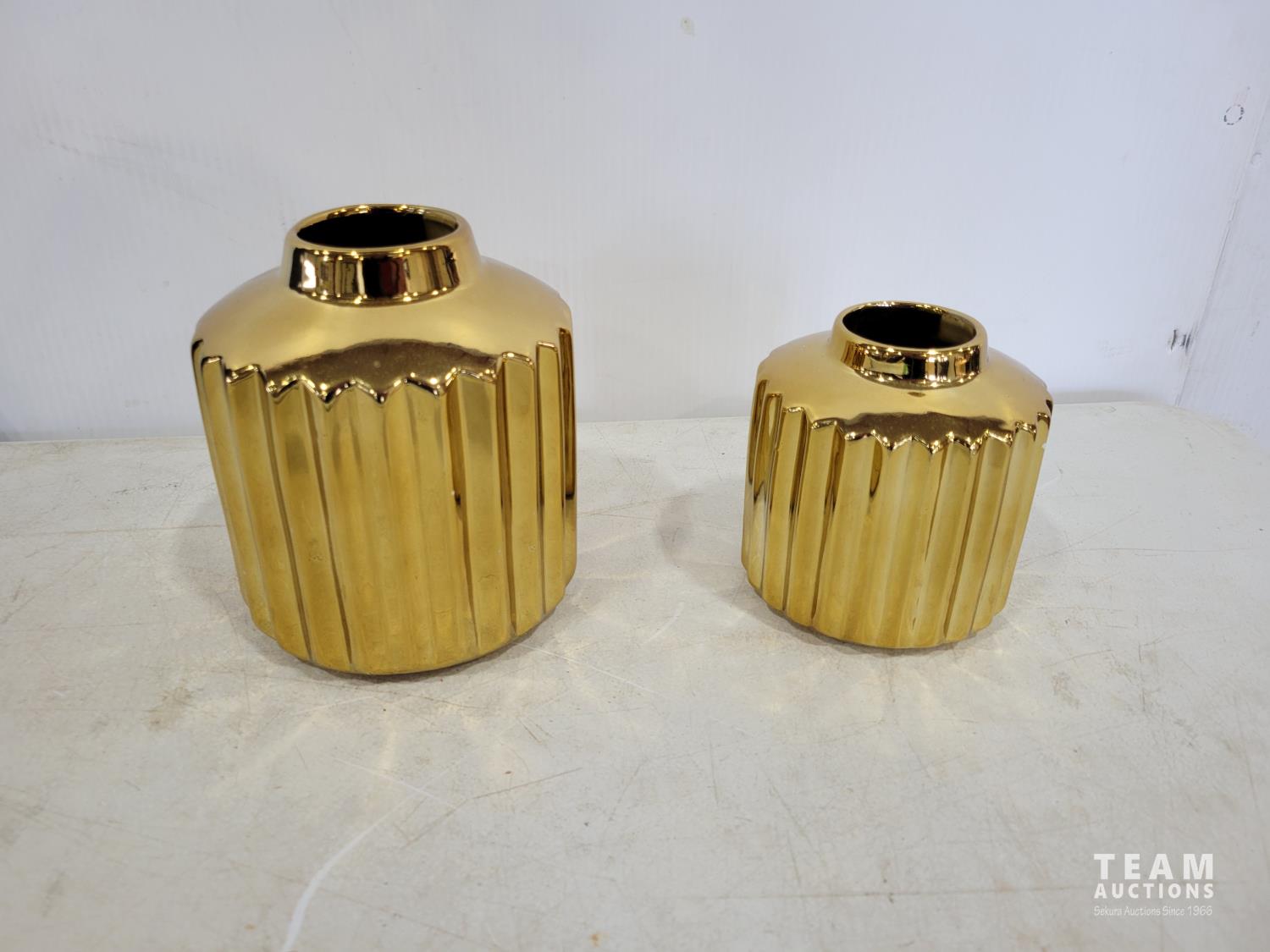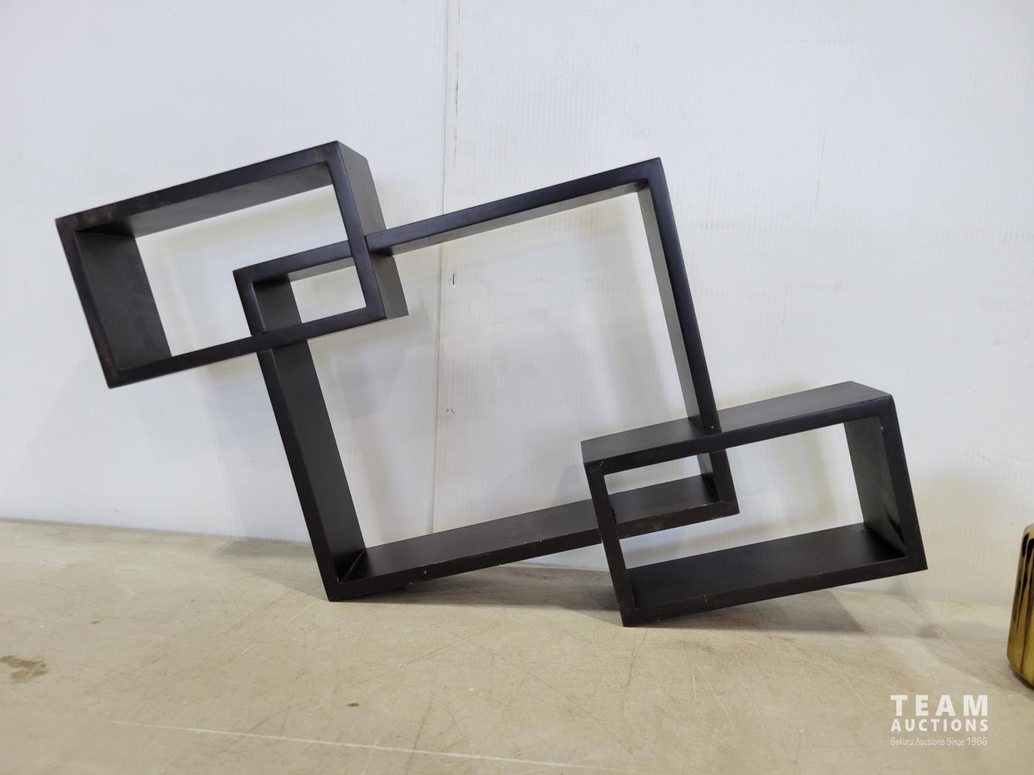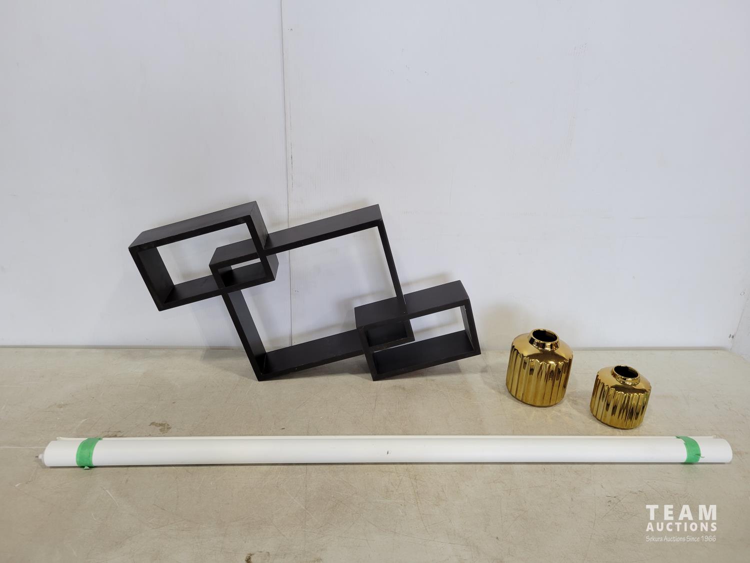 1392 Floating Shelf, (2) Gold Ribbed Vases and Projection Screen