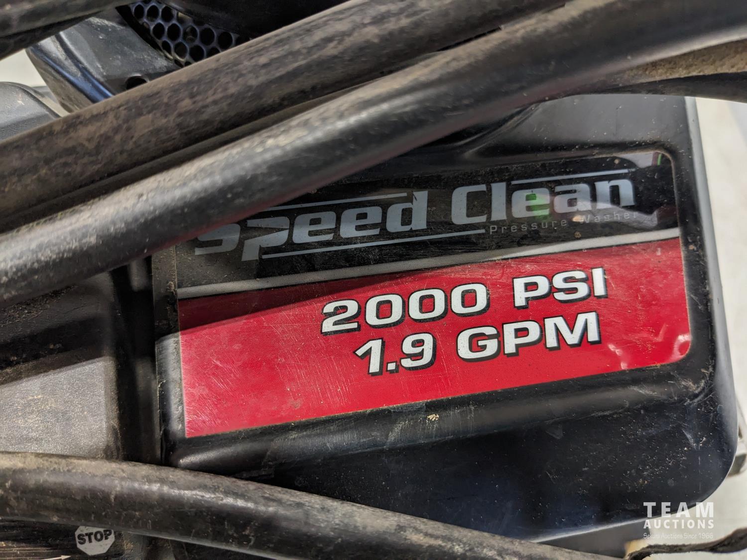 3.75 HP gas engine, 2000 PSI, 1.9 gallon/min, hose & wand