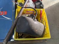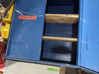Cabinet 30 inch w x 10 inch d x 30 inch h, miscellaneous parts, wires, mirrors, 57 inch pry bar