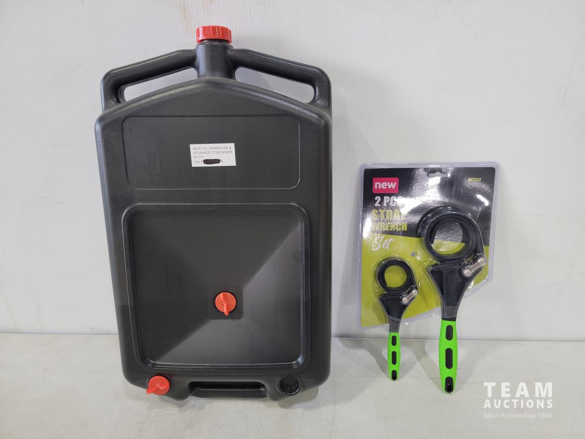1551 Oil Drain Pan/Storage Container and 2 Piece Strap Wrenches (Unused)