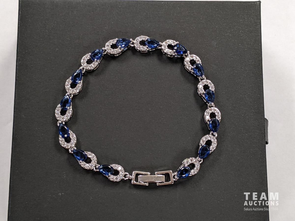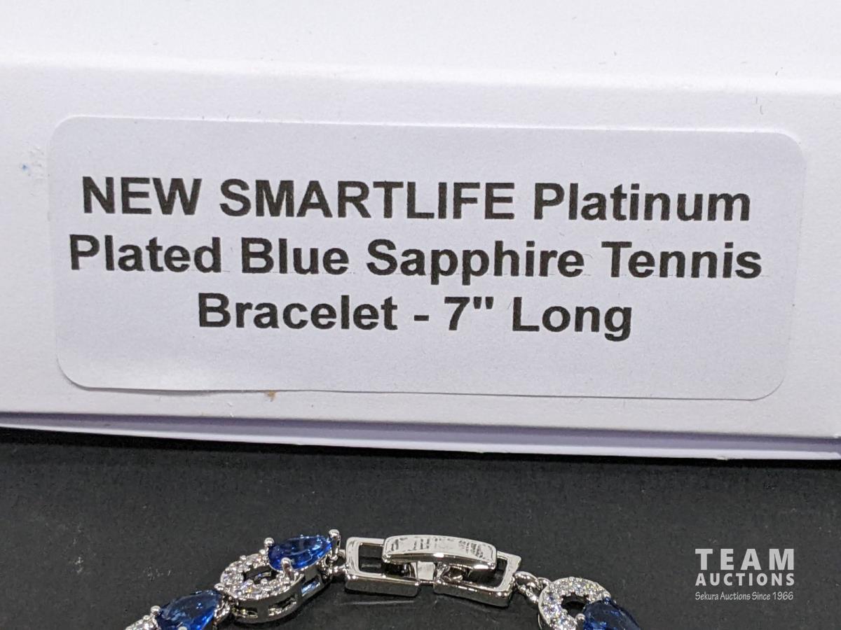 1665 SMARTLIFE Platinum Plated Blue Sapphire Tennis Bracelet (Unused)
