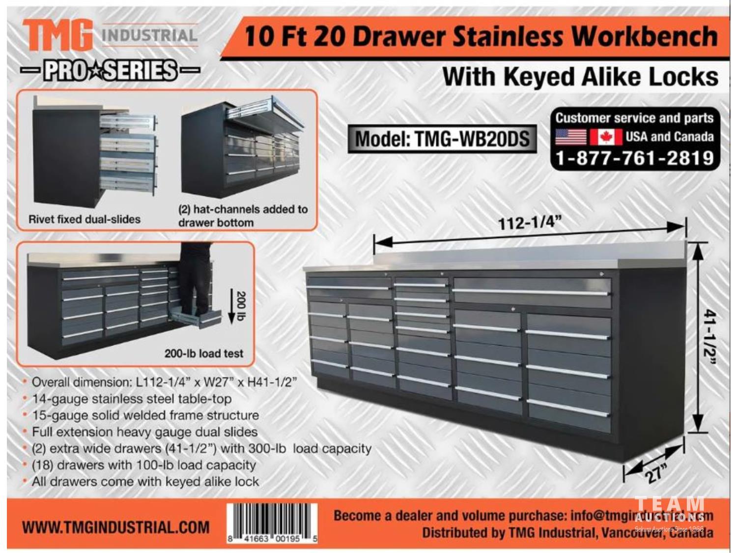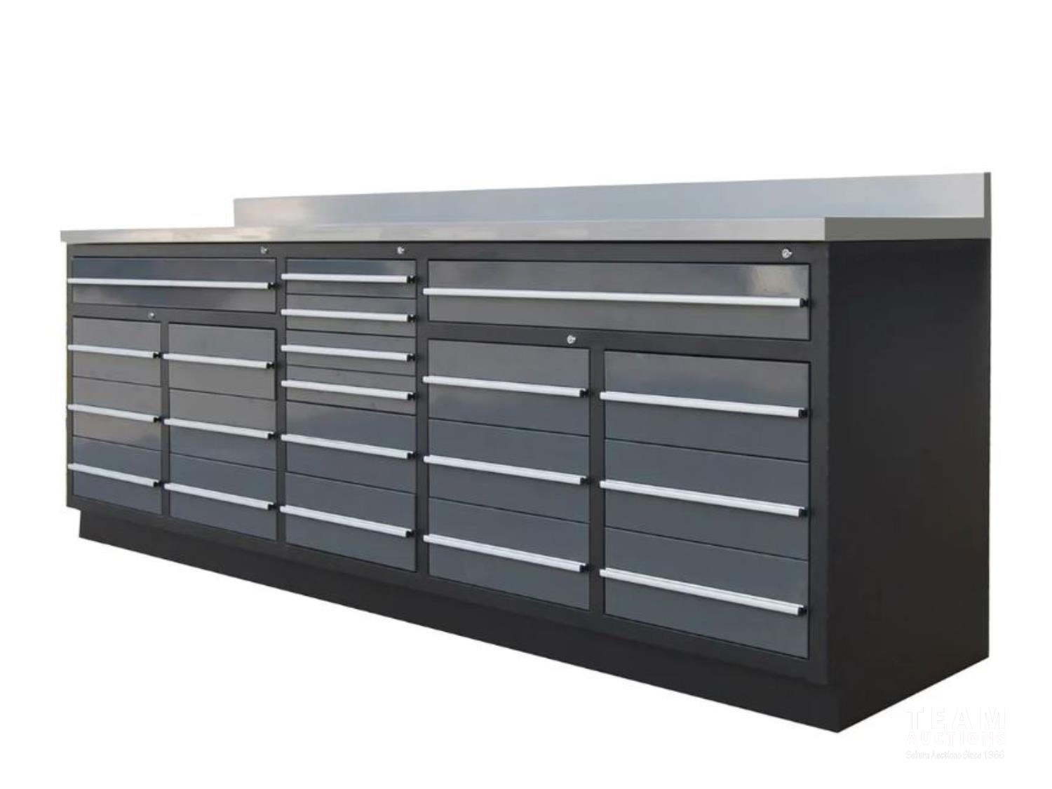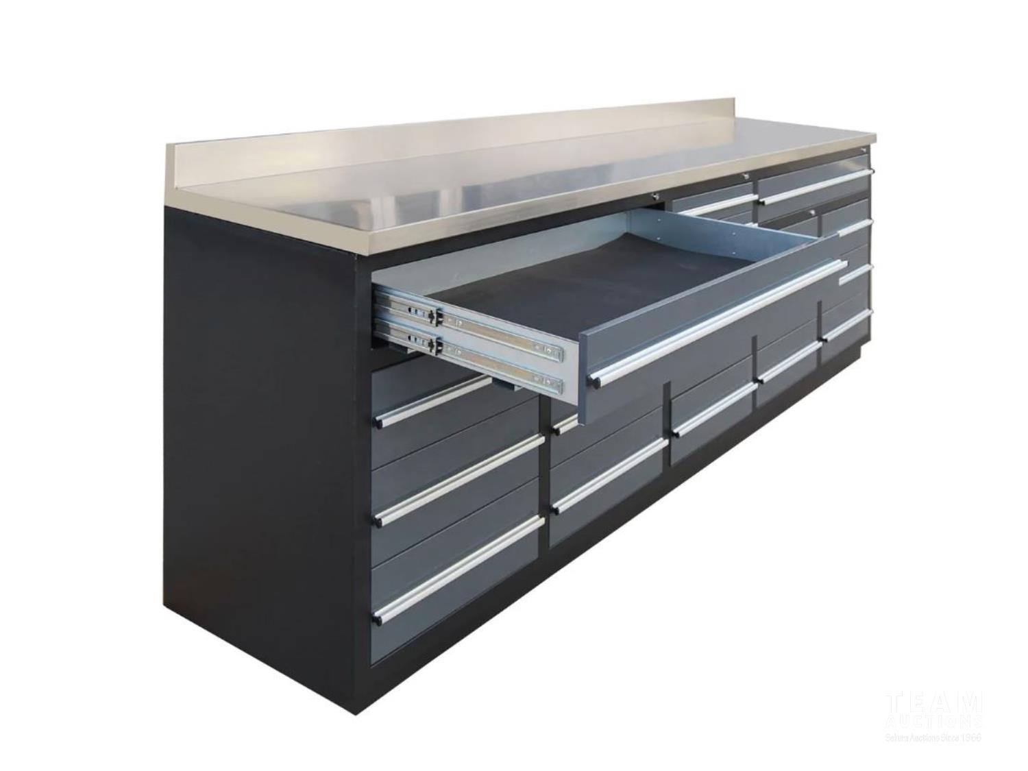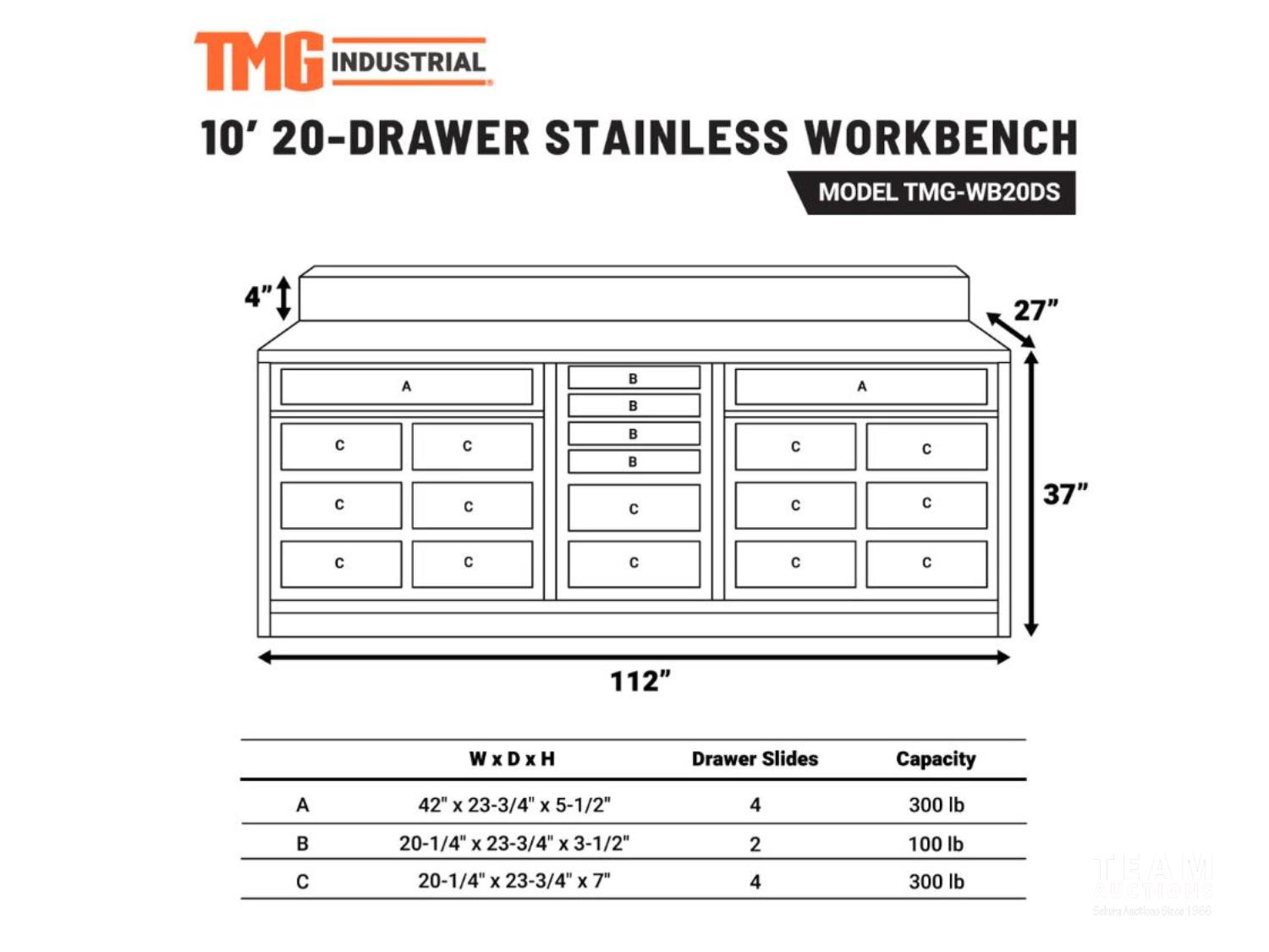1764 TMG Industrial WB20DS Pro Series 10 Ft 20-Drawer Stainless Workbench (Unused)