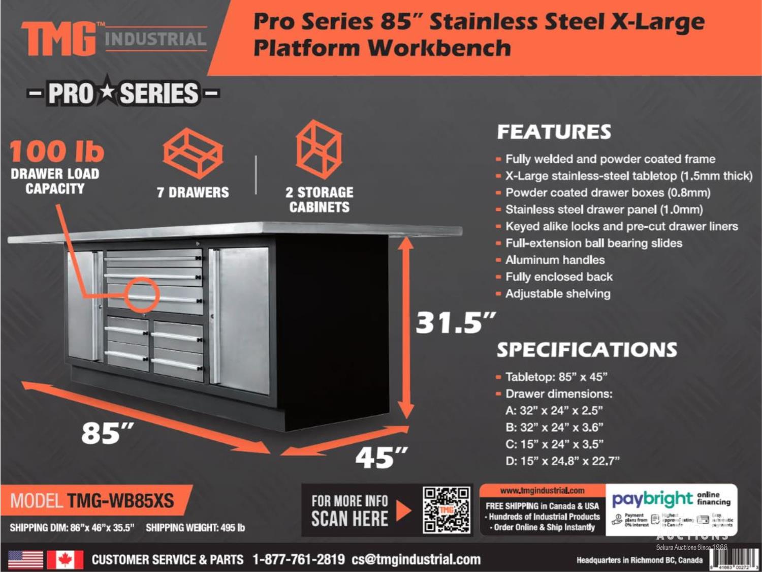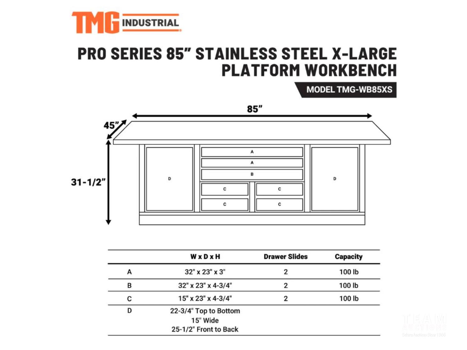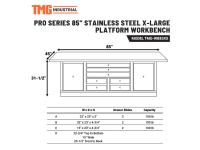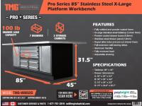 1766 TMG Industrial WB8XS Pro Series 85 Inch Stainless Steel X-Large Platform Workbench (Unused)