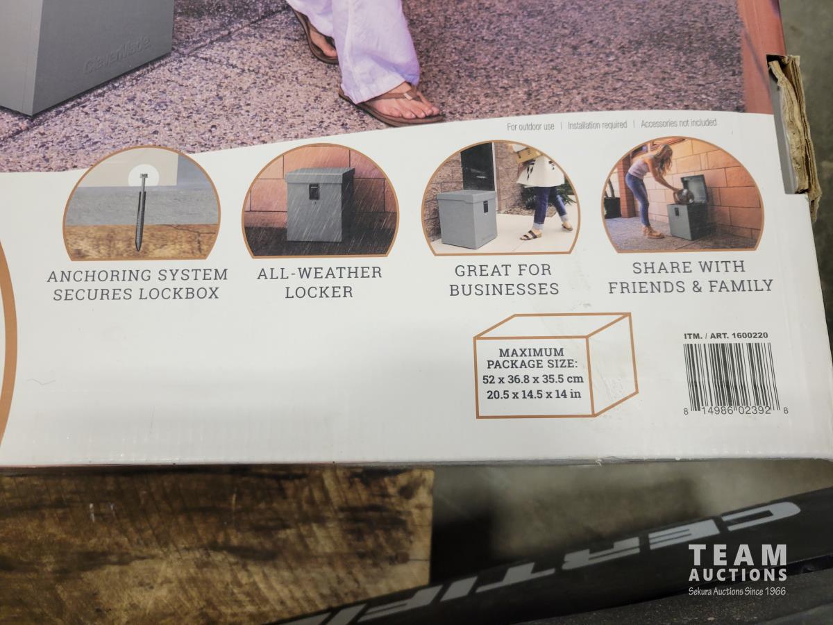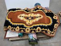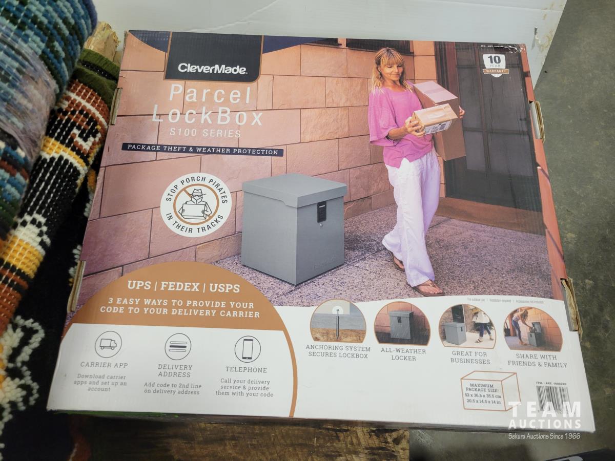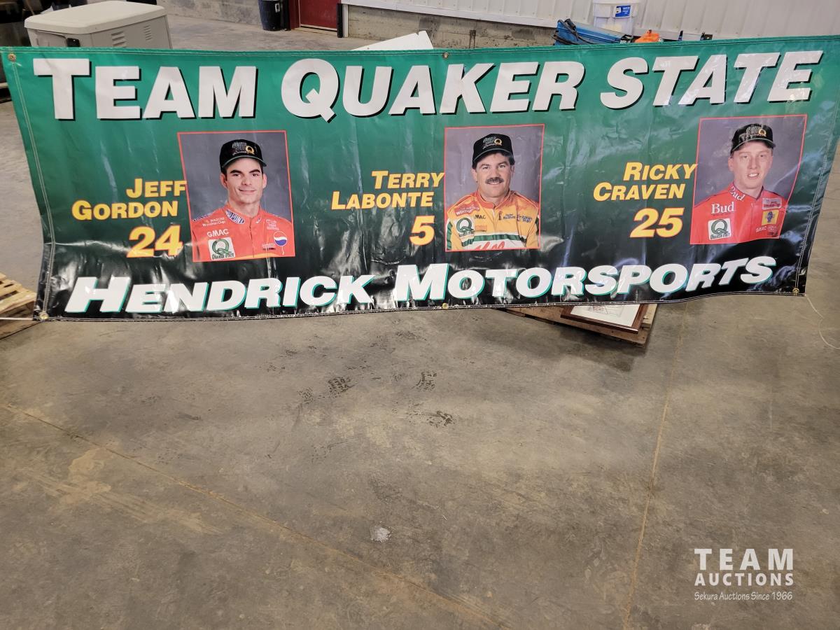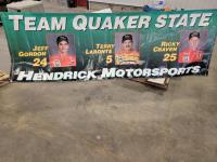 Clevermade parcel lock box, car ramps, qty of rugs, glassware, Hendrick Motorsports banner