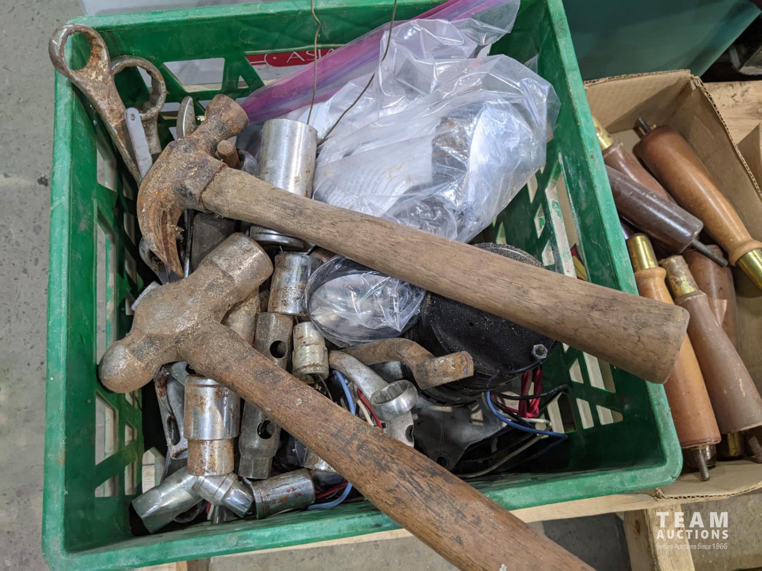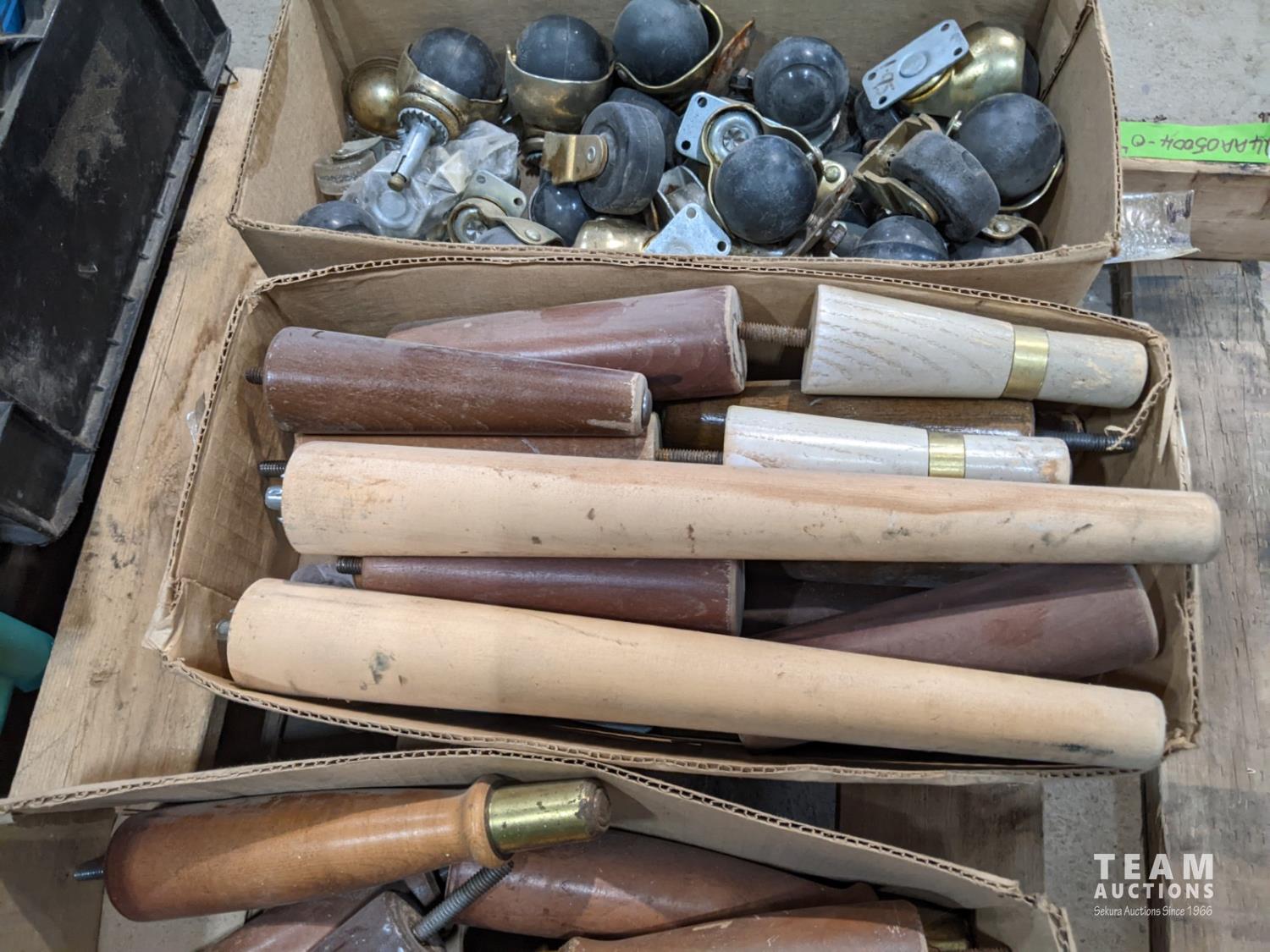 Sockets, hammers, table and chair feet, wheels, hardware, nails, gloves