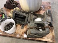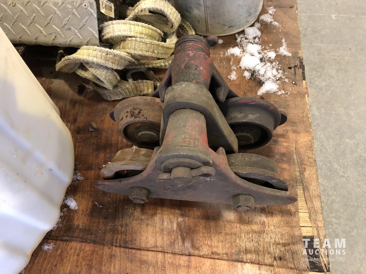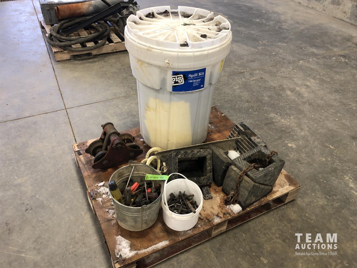 (6) 12 inch x 33 inch aluminum grating, spill kit, wheel chocks, beam dolly, various tools