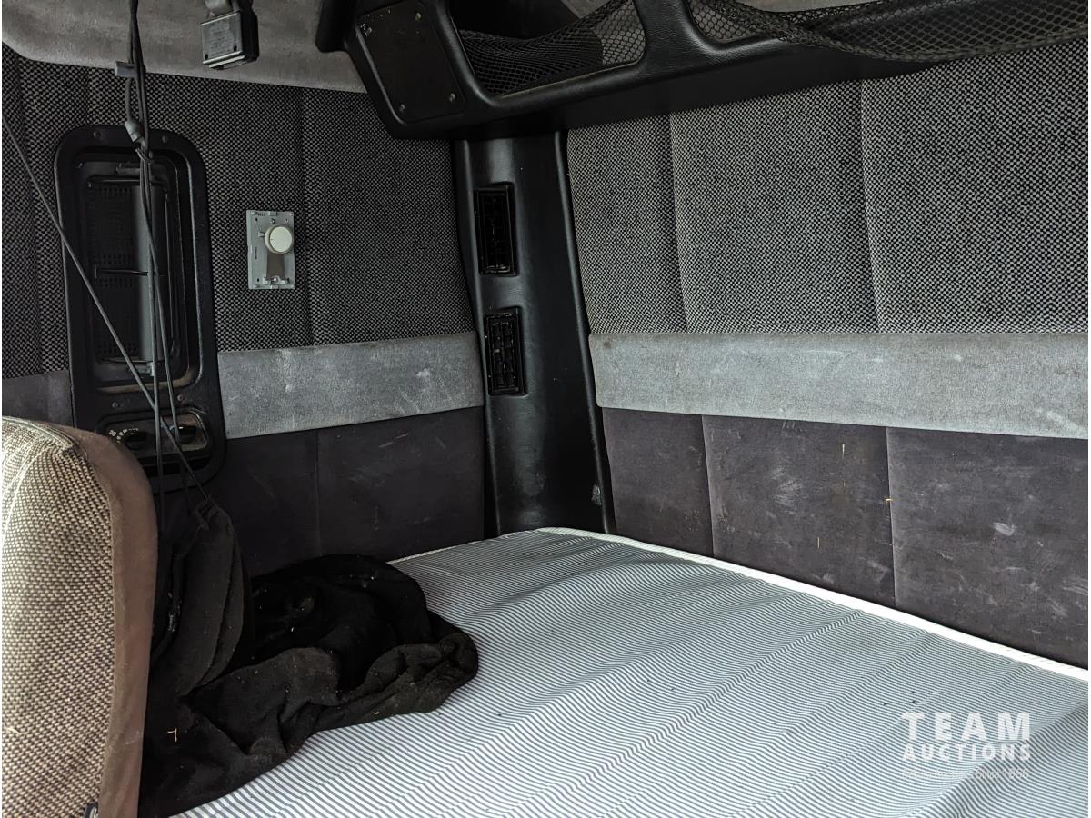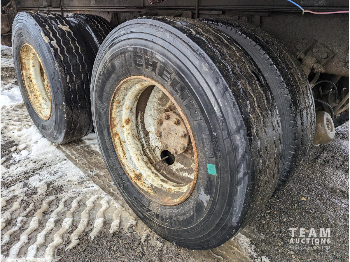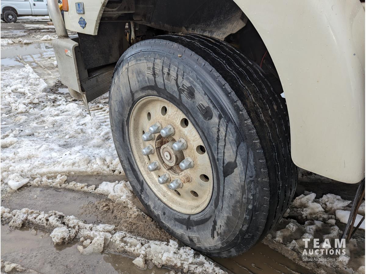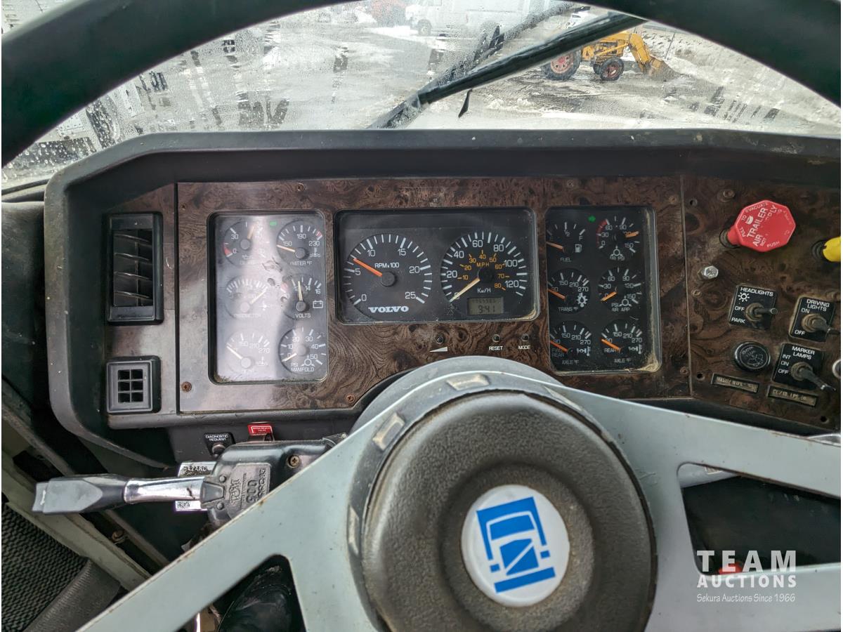 Volvo RVT12.EJDBRA 12.1 L 6 cylinder 425 HP diesel engine, engine brake, Volvo 15 speed manual transmission, air assisted clutch, flat top sleeper, A/C, cruise control, air ride driver seat, radio, CB radio, aluminum moose bumper, steel headache rack, 8 ft x 23 ft deck, Volvo PTO pump, spring suspension, 14,000 lb front axle, 40,000 lb rear axles, diff lock, 3.36 ratio, 292 inch WB, 315/80R22.5 front tires, 11R22.5 rear tires