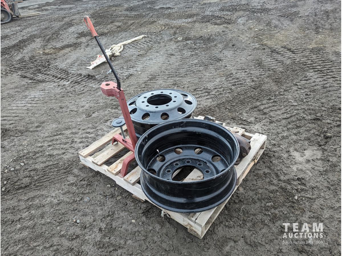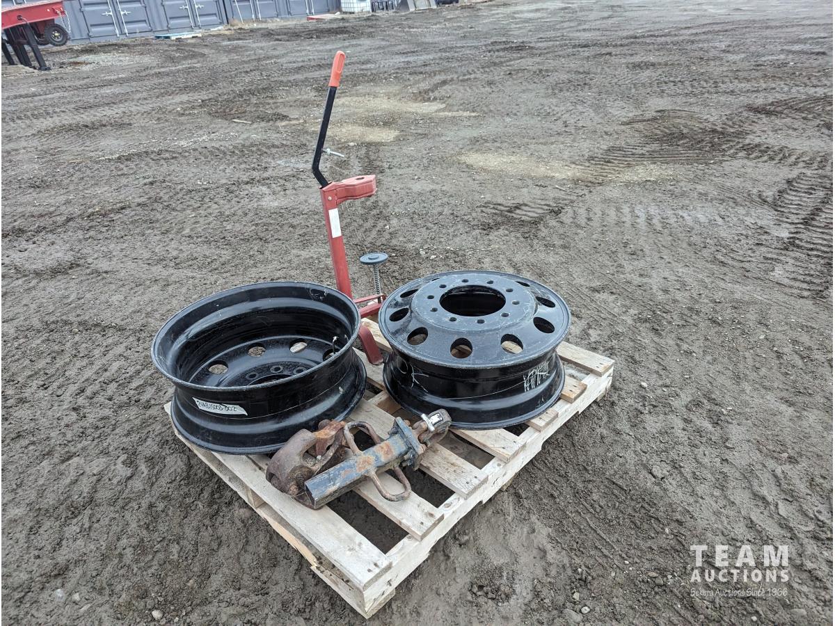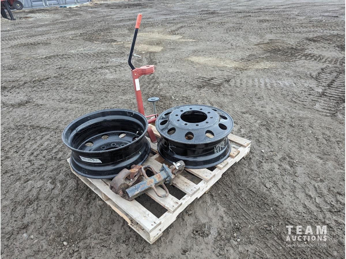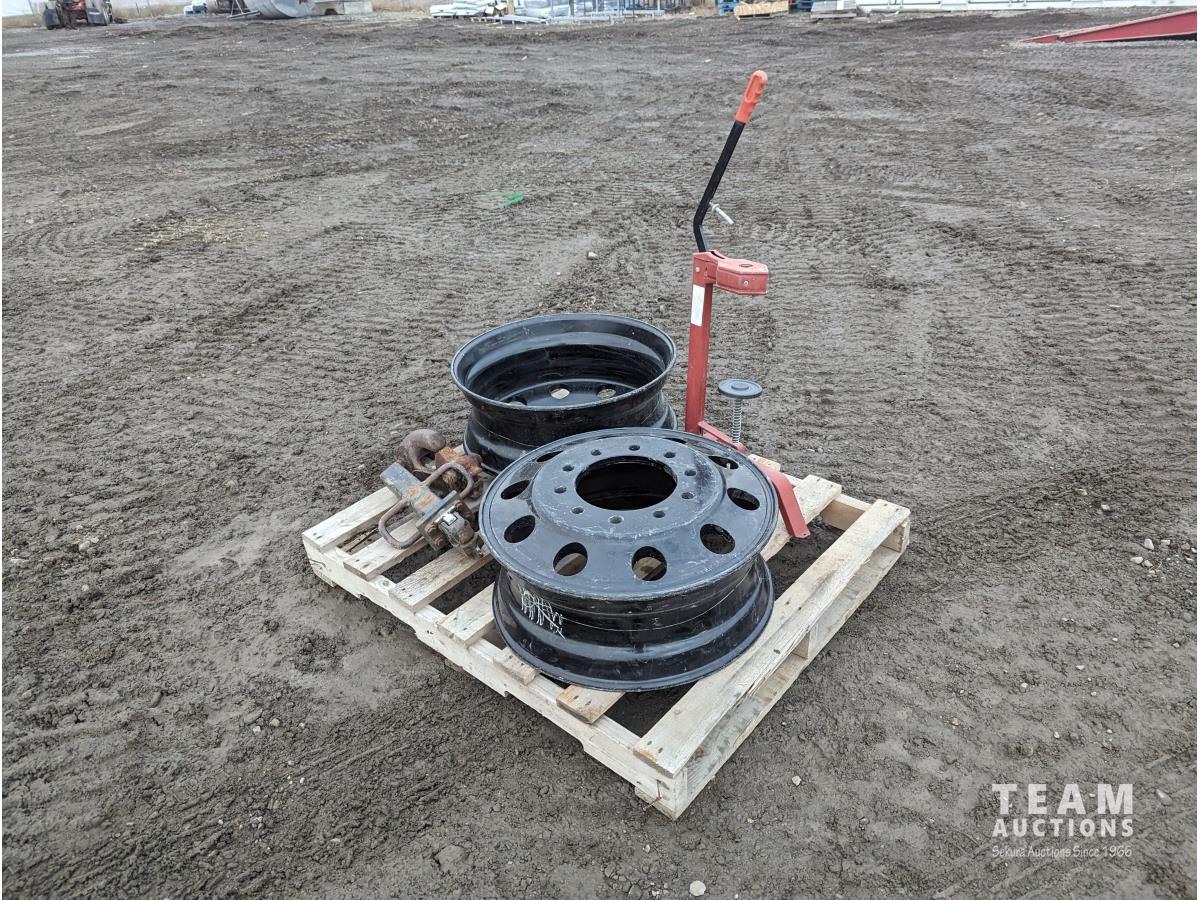 244 (2) 24.5 Inch X 9 Inch Steel Wheels, (2) Pintle Hitches & Wine Corker