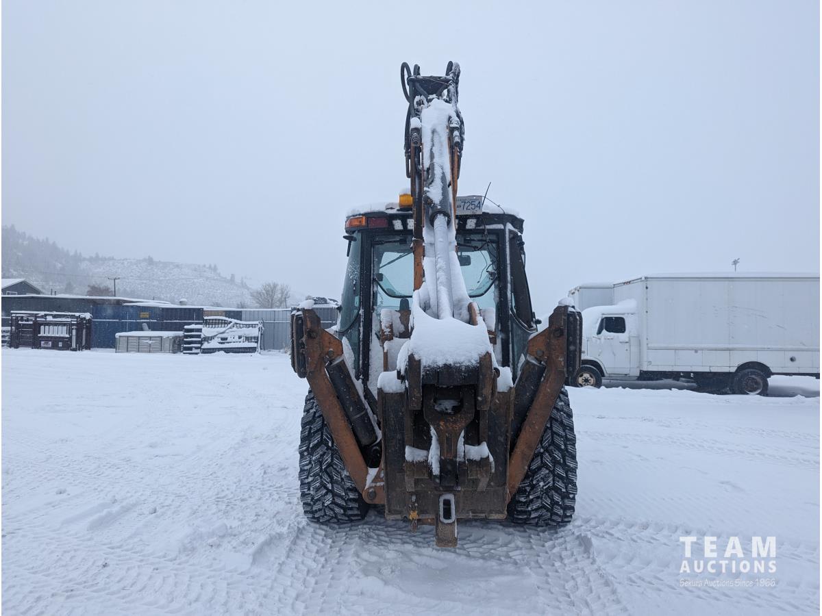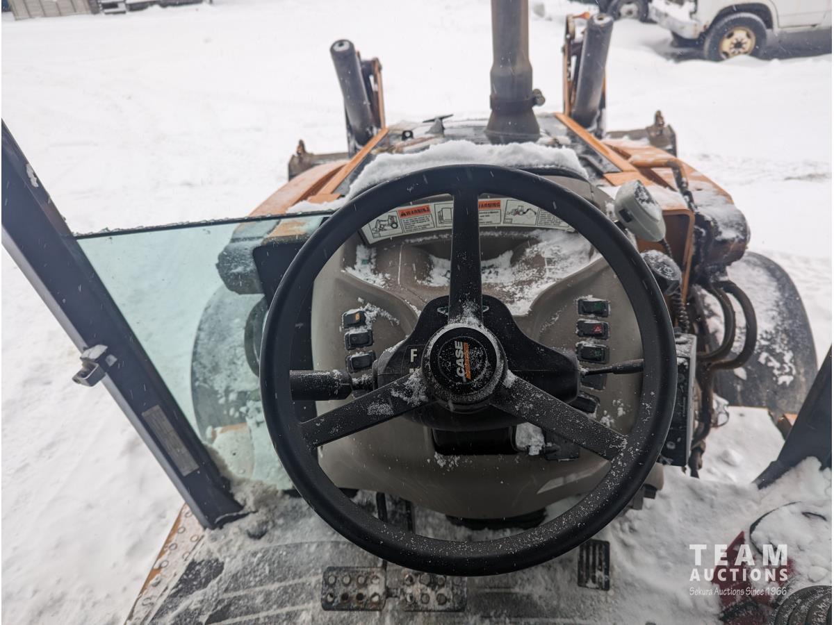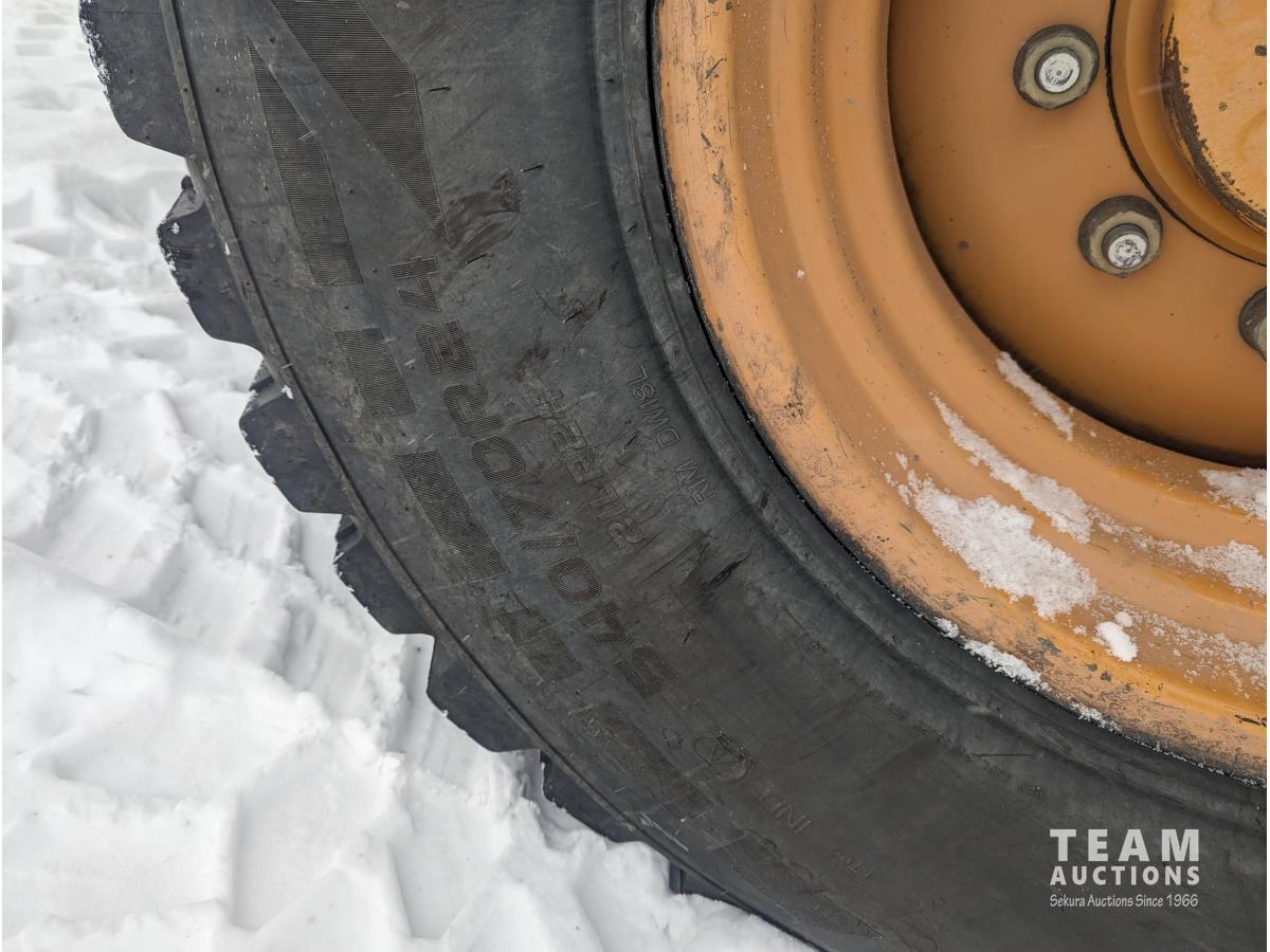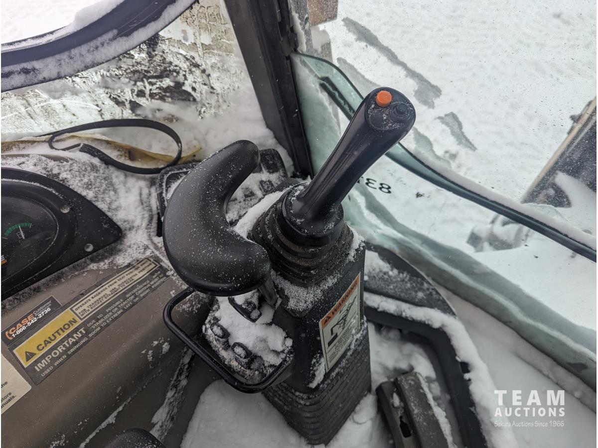 Case 4 cylinder diesel engine, 4 speed transmission, 92 inch multi purpose bucket, extended-a-hoe c/w 23 inch cleanup bucket, enclosed cab, AC, heat, CB radio, radio, 14.1-17.5 fronts, 540/70R24 rears