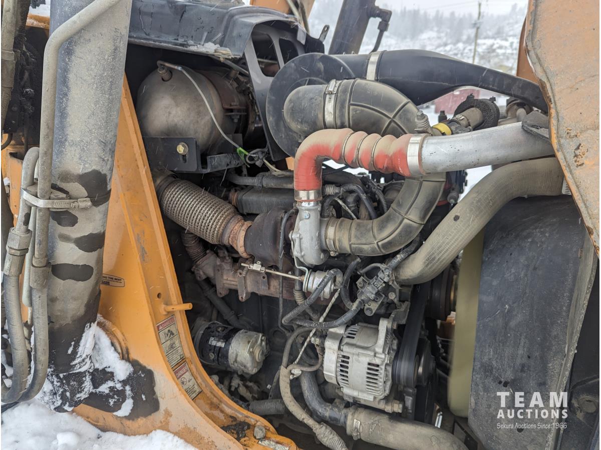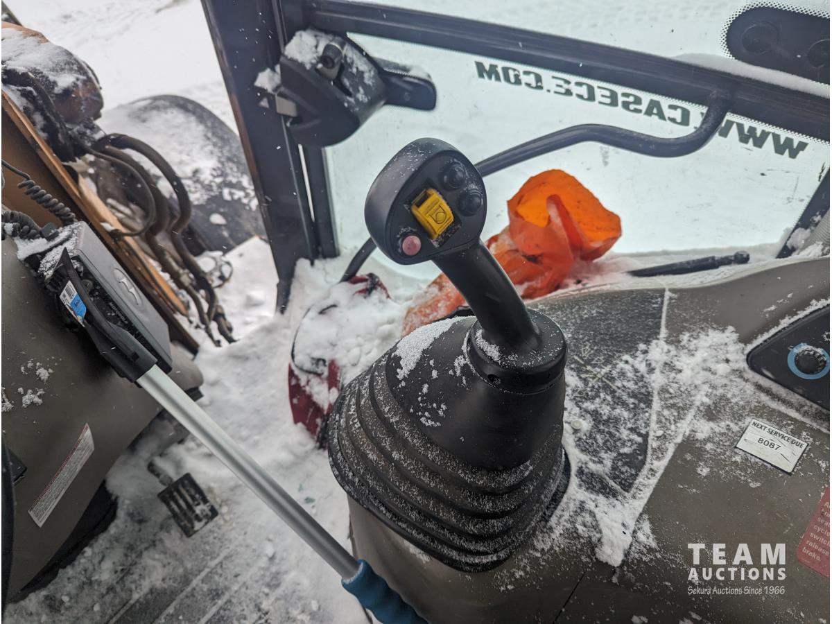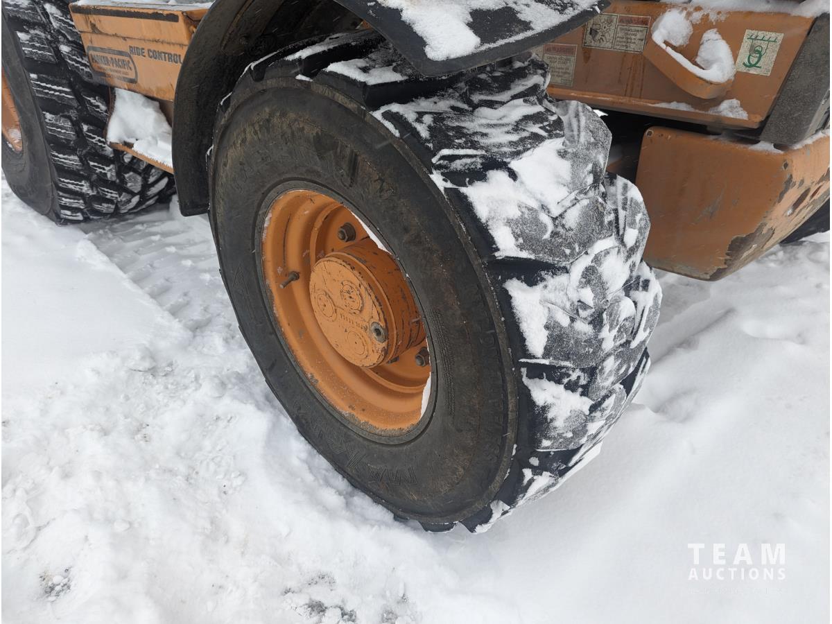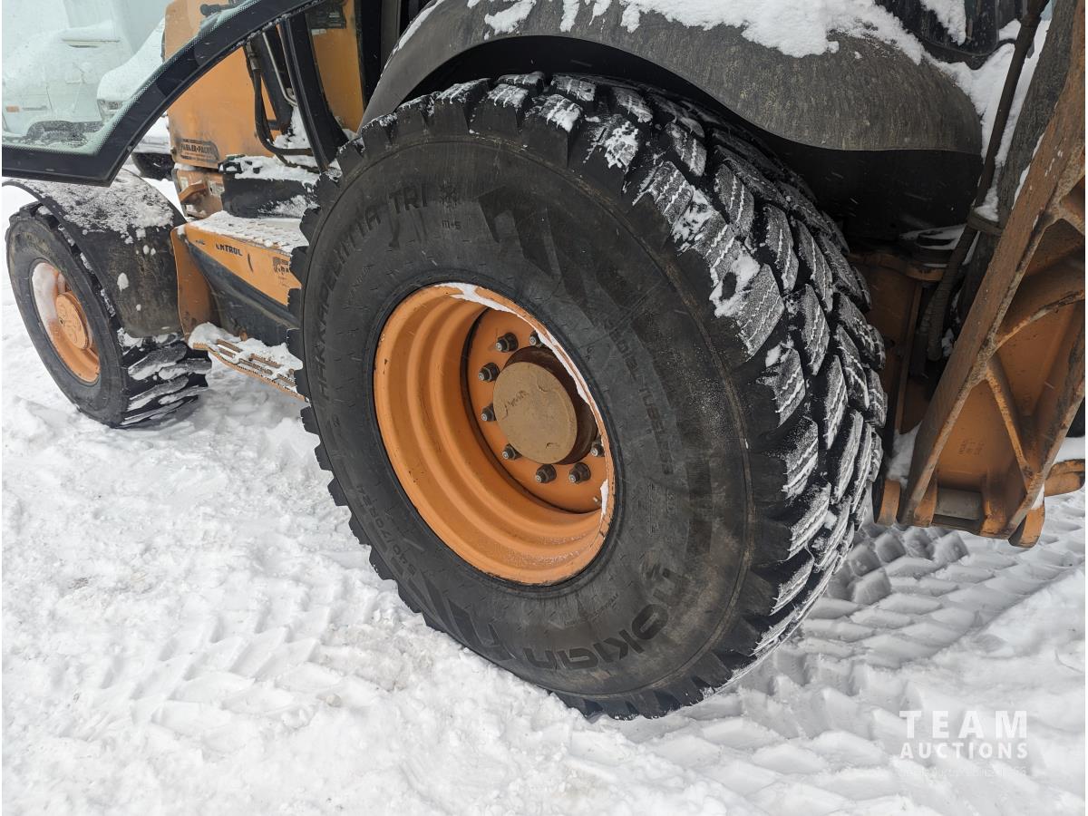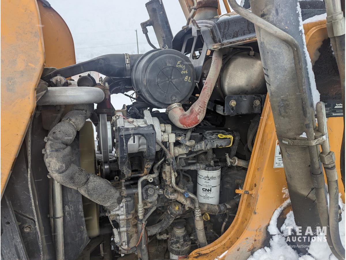 Case 4 cylinder diesel engine, 4 speed transmission, 92 inch multi purpose bucket, extended-a-hoe c/w 23 inch cleanup bucket, enclosed cab, AC, heat, CB radio, radio, 14.1-17.5 fronts, 540/70R24 rears