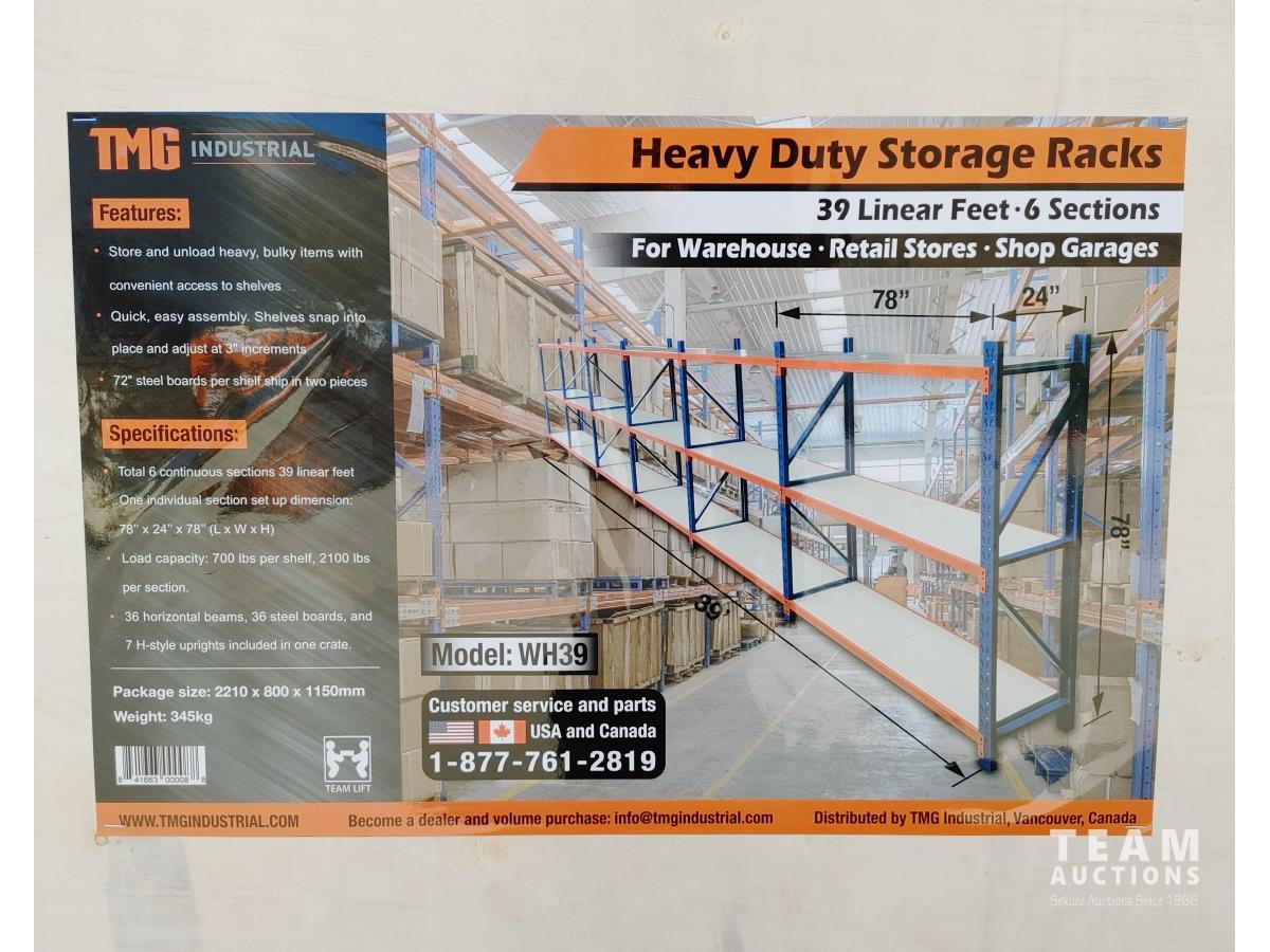 154 TMG Industrial WH39 39 Ft Metal Garage/Workshop Storage Shelves (Unused)