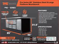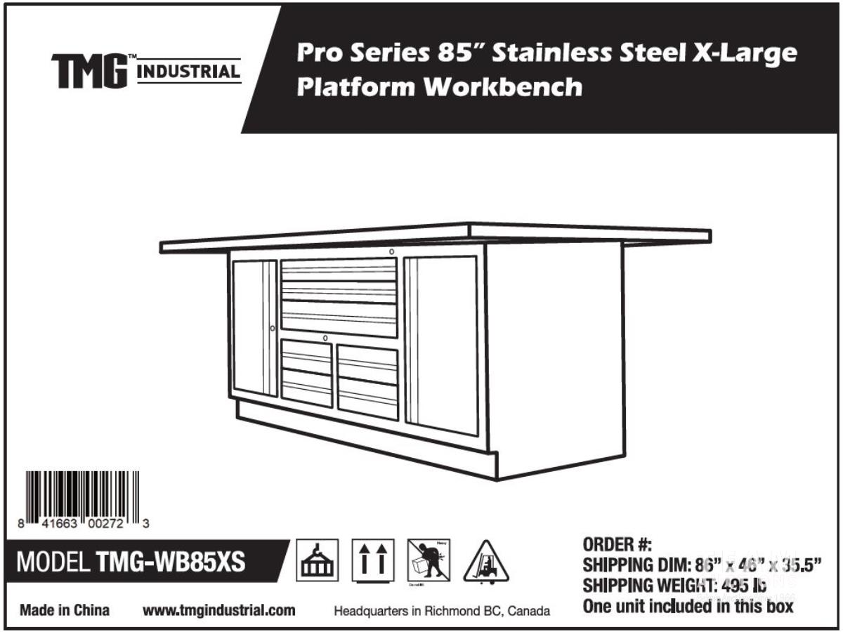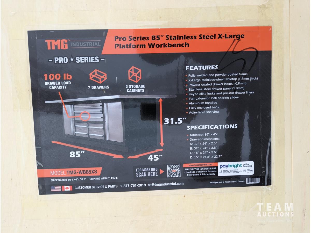 125 TMG Industrial WB85XS 85 Inch Stainless Steel X-Large Platform Workbench (Unused)