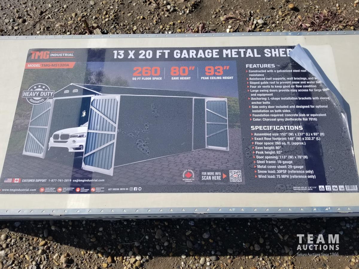 322 TMG Industrial MS1320A 13 Ft X 20 Ft Metal Garage Shed (Unused)