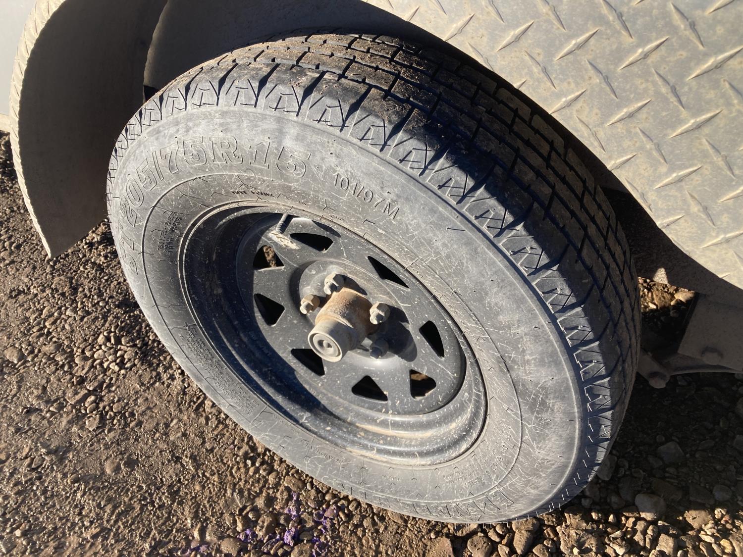 82 inch interior width, 87 inch interior height, ball hitch, side door, fold down door, electric brakes, spring suspension, 3508 lb axles, 205/75R15 tires