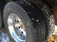 Pintle hitch, 8 ft 5 inch box width, 53 inch side wall height, roll tarp, air tail gate, air brakes, spring suspension, 22,000 lb axles, all aluminum wheels, 11R24.5 tires