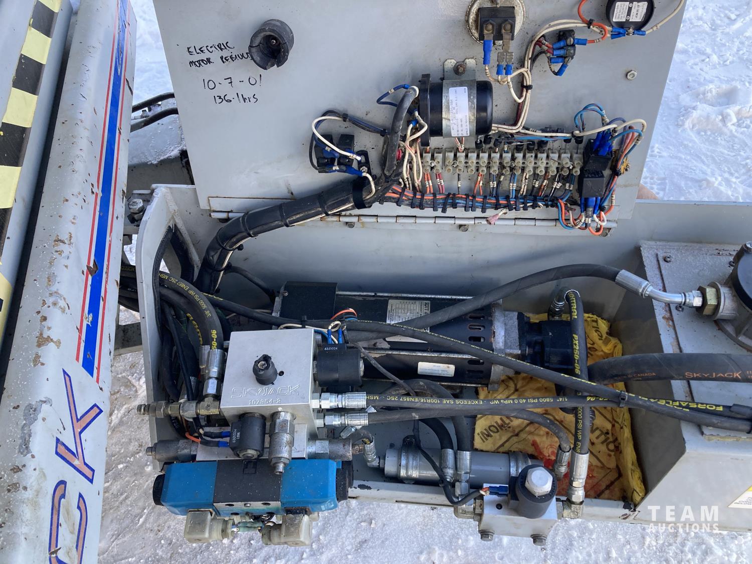 24V, 1000 lb. maximum capacity, 32 Ft maximum height, 5 Ft x 7 Ft deck w/ 3 Ft extension, 5810 lb. unit weight, 23x10.50-12 tires