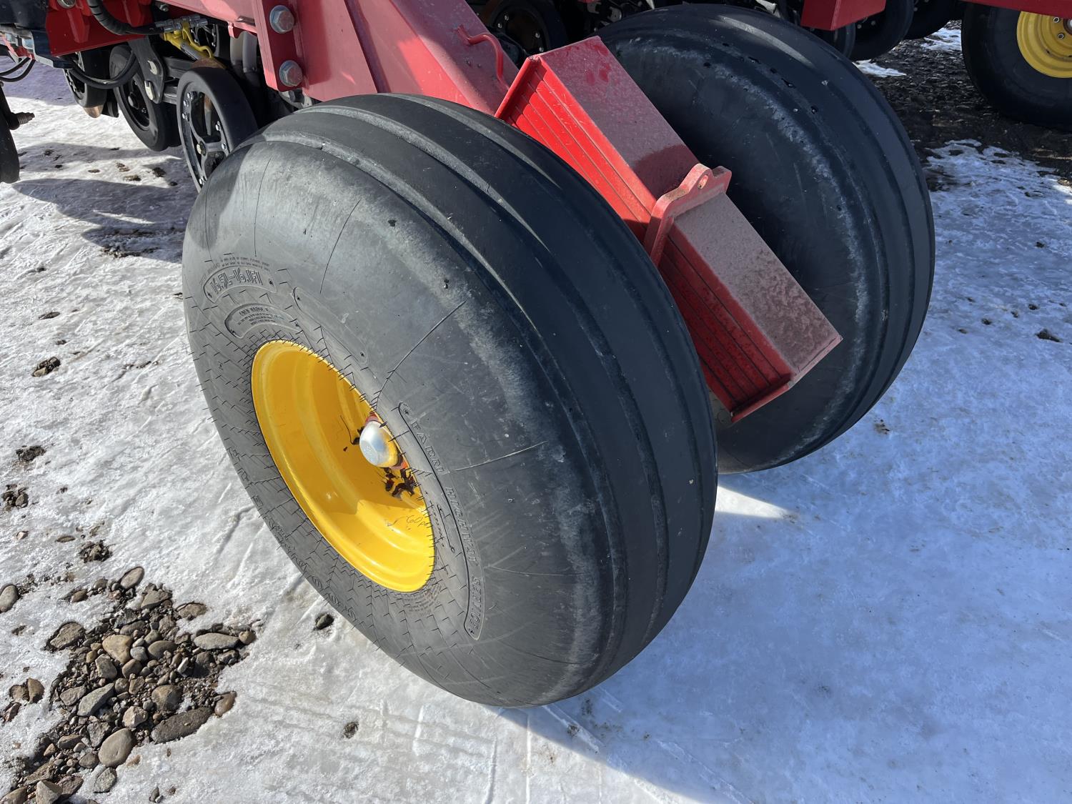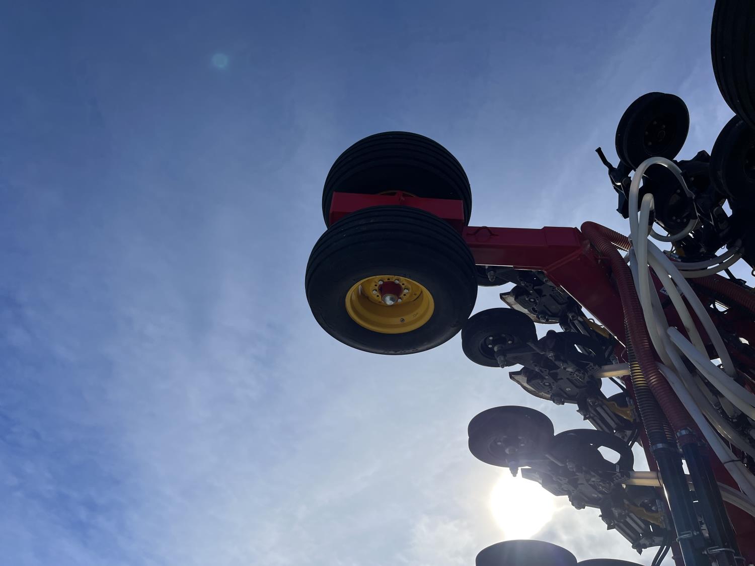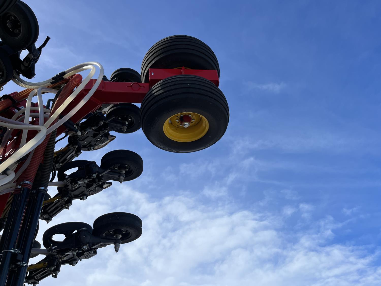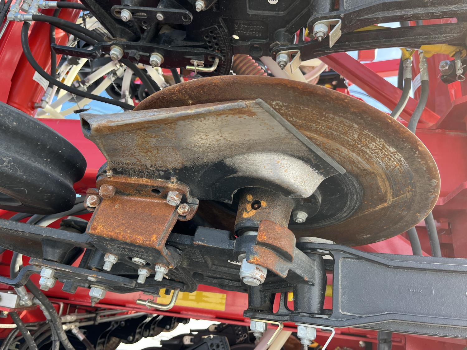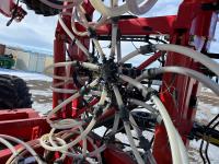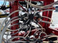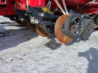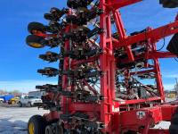 12 inch spacing, double shoot openers, 4.5 inch rubber packers, blockage sensors, Drill control monitors, Novlan Bros disc wing scrapers, 800/65R32 front tires, 16.5L-16.1FI rear tires, 540/65R24 wing tires, Ipad with blockage sensor software included, was paired with tow behind New Holland P4760 Air Cart, 9000 acres seeded