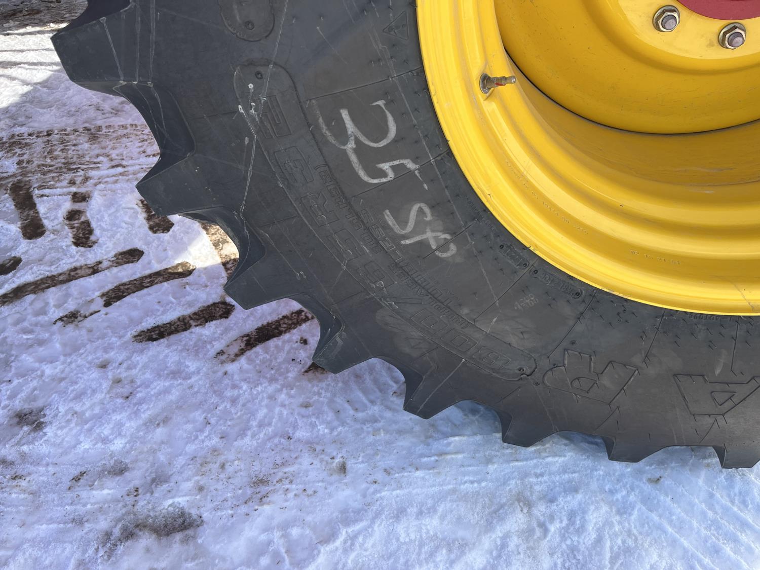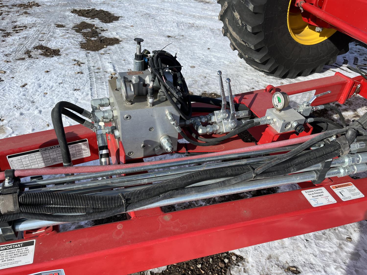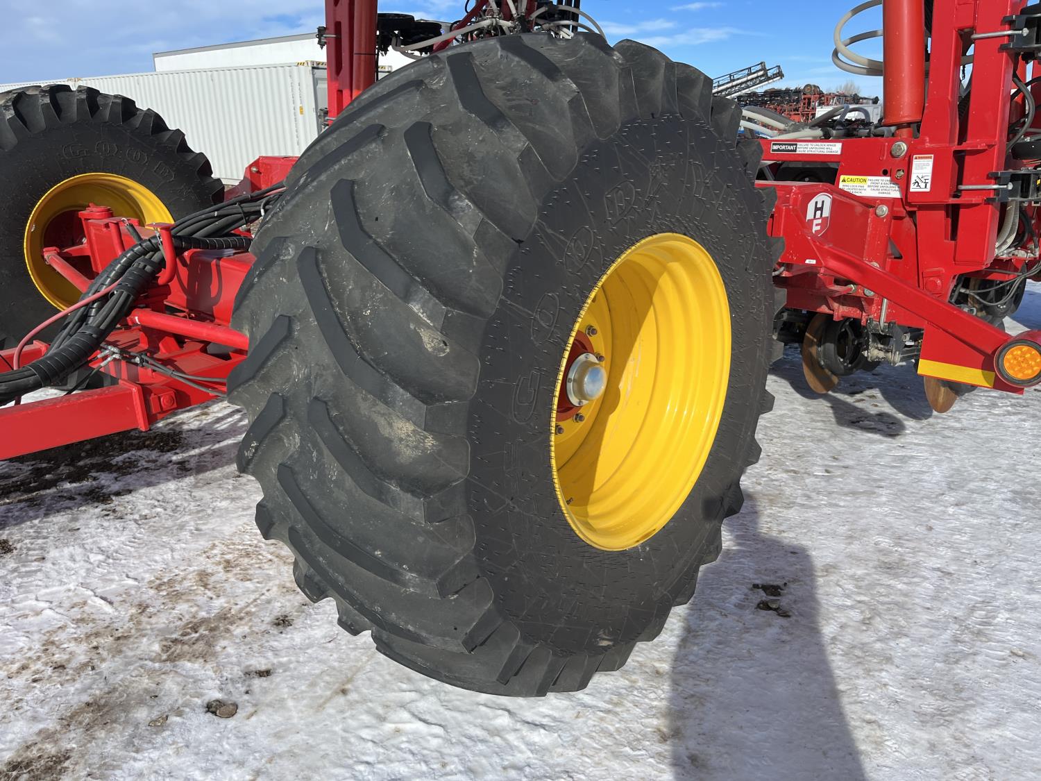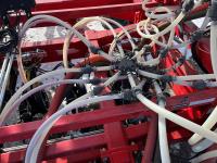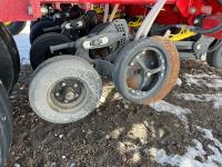 12 inch spacing, double shoot openers, 4.5 inch rubber packers, blockage sensors, Drill control monitors, Novlan Bros disc wing scrapers, 800/65R32 front tires, 16.5L-16.1FI rear tires, 540/65R24 wing tires, Ipad with blockage sensor software included, was paired with tow behind New Holland P4760 Air Cart, 9000 acres seeded