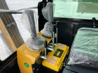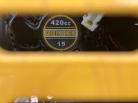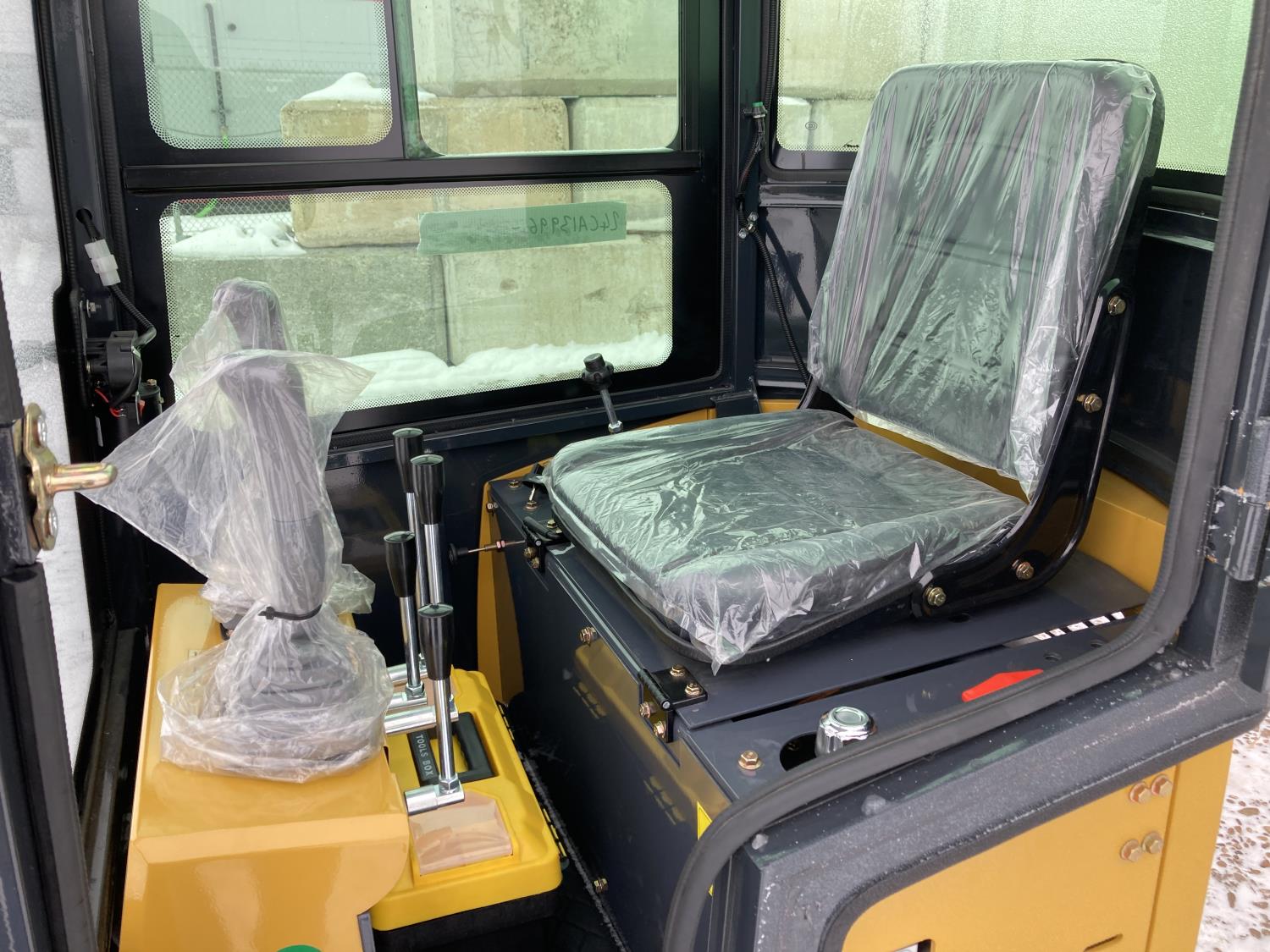 Enclosed cab, 15 HP gas engine, 15 inch dig bucket, manual thumb, 32 inch stick, 7 inch rubber tracks