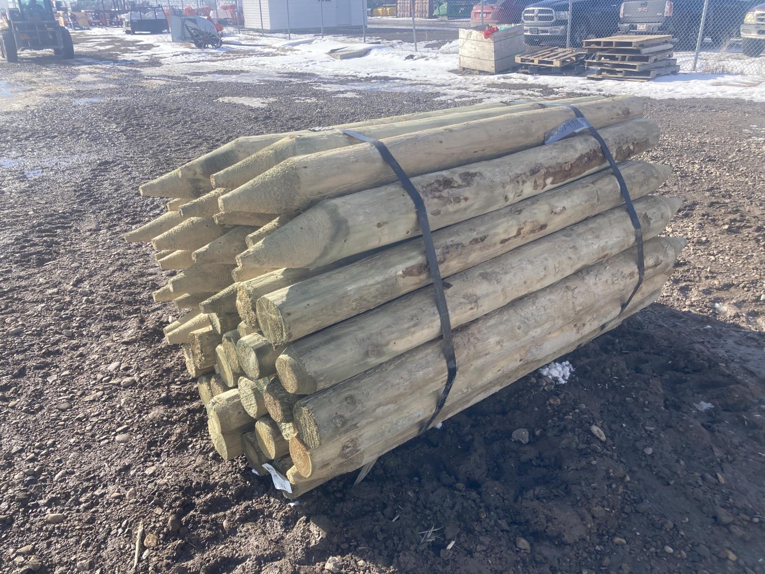 95 (50) 5 - 6 Inch X 6 Ft Treated Fence Posts (Unused)
