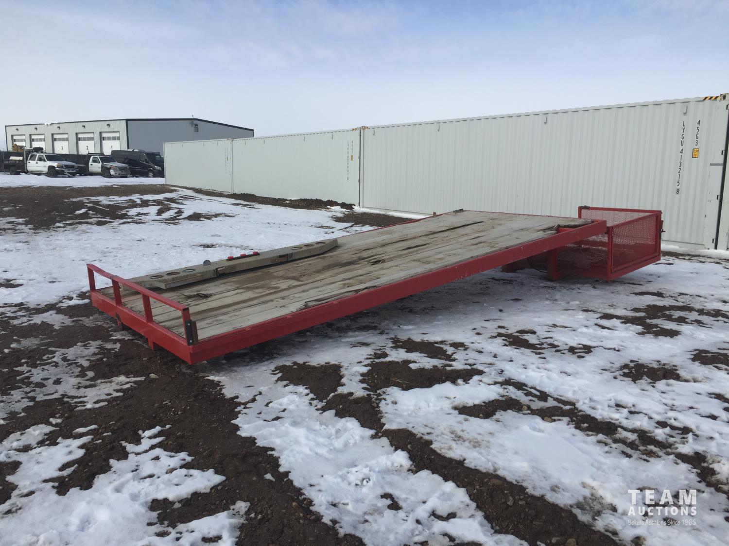 wood deck, 4 ft x 4 ft steel mesh storage box & 4 ft x 4 ft work area off back end