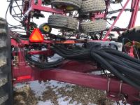 12 inch spacing, 4.5 inch rubber packers, 3 inch paired row dual shoot openers, carbide tips, blockage sensors, twin wing shanks, 5 plex fold, 3 inch drawbar pin, drill 19.0/45-17 front and 30.5-32 rear tires, Air Cart: 800 bushel, 3 compartments, Raven monitor, long wire harness, full sensors, 12 inch conveyor, double fan, extra meter rollers, variable rate metering, sectional control, stainless steel distribution, stainless steel loading system, rear hitch, cart has 30.5-32 duals