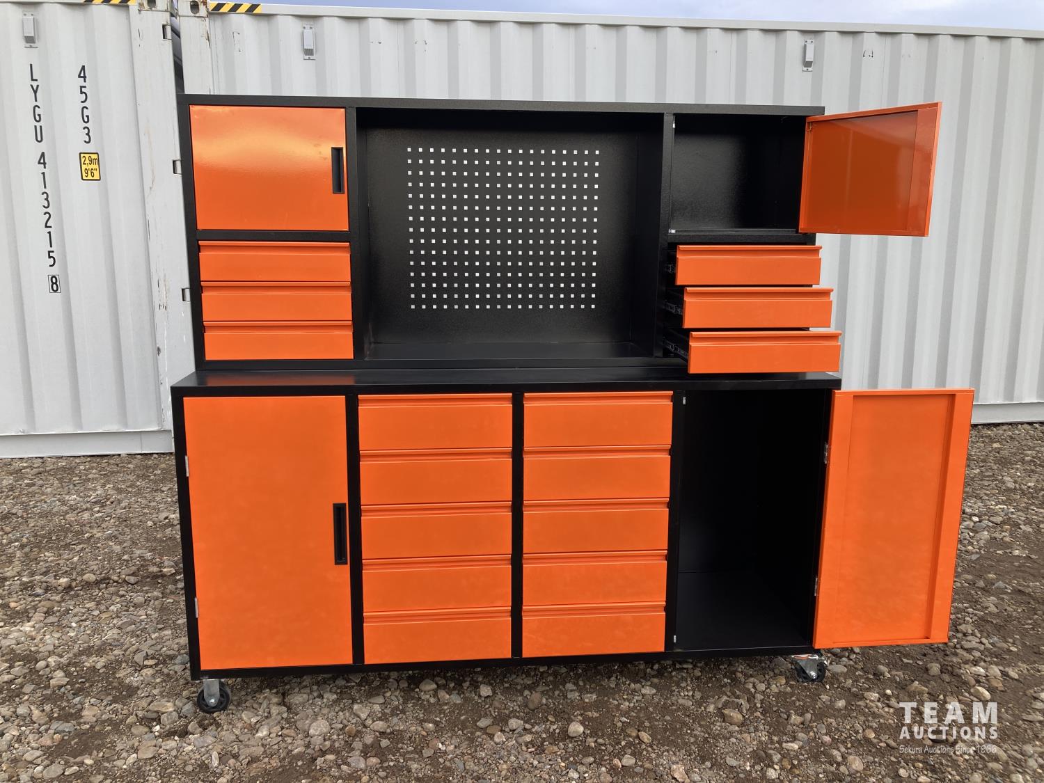 180 Diggit 18D 77 Inch 18 Drawer 4 Door Tool Chest/Workbench (Unused)