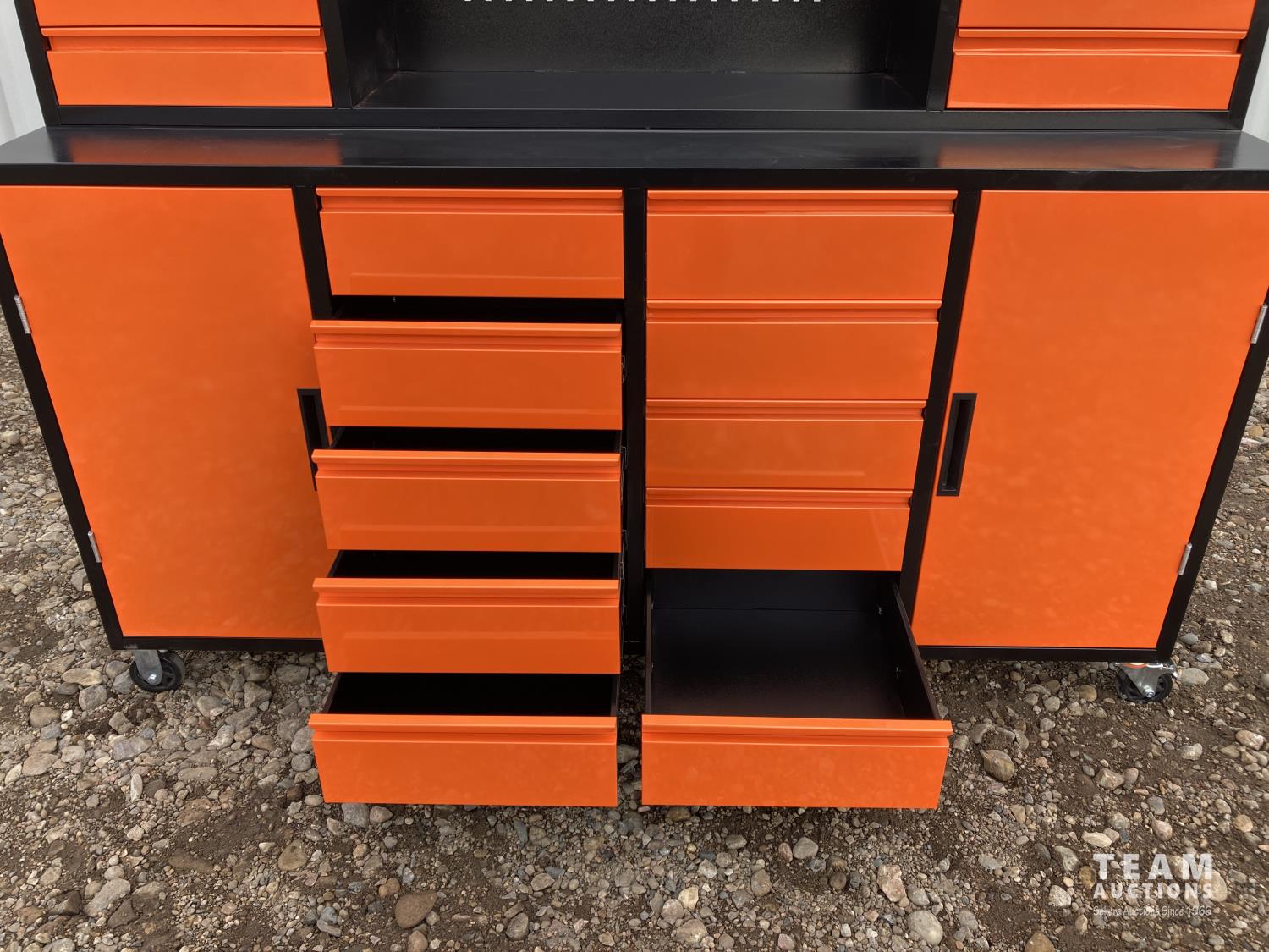181 Diggit 18D 77 Inch 18 Drawer 4 Door Tool Chest/Workbench (Unused)