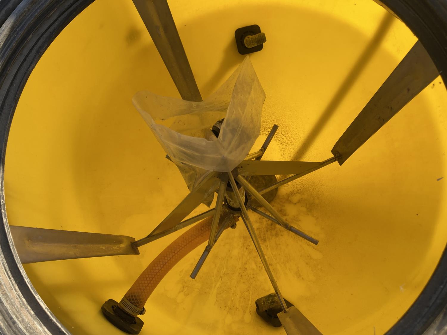 70 gallon poly tank, handler knife system, tank rinse