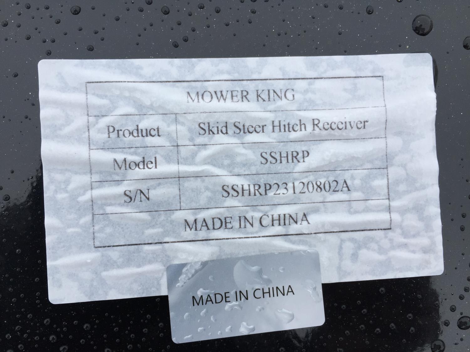 440 Mower King SSHRP Skid Steer Hitch Receiver (Unused)