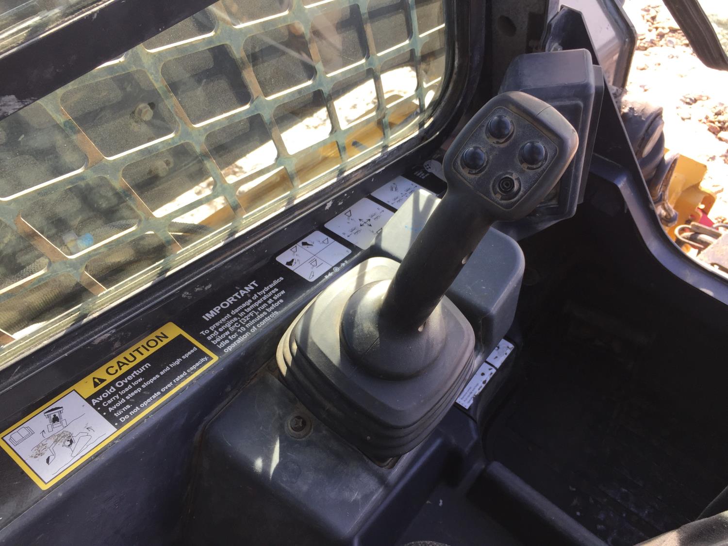 Enclosed cab, pilot controls, rear view cameras, diesel engine, 2 speed transmission, cab screens, hydraulic Q/C coupler, aux hydraulics, 18 inch rubber tracks