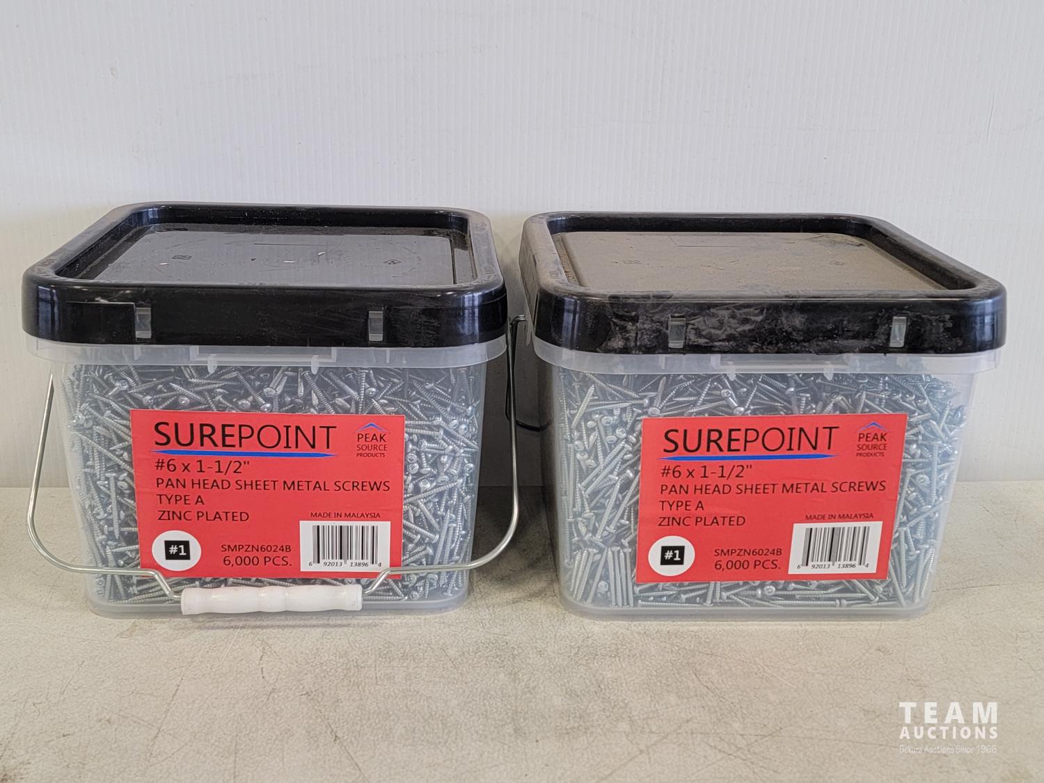 5117 (2) 6000 Piece Surepoint #6 X 1-1/2 Inch Panhead Sheet Metal Screws (Unused)