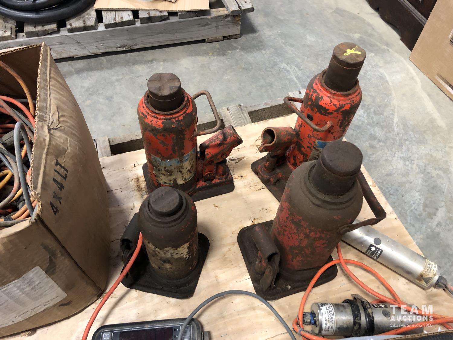 (4) hydraulic bottle jacks, (2) trouble lights