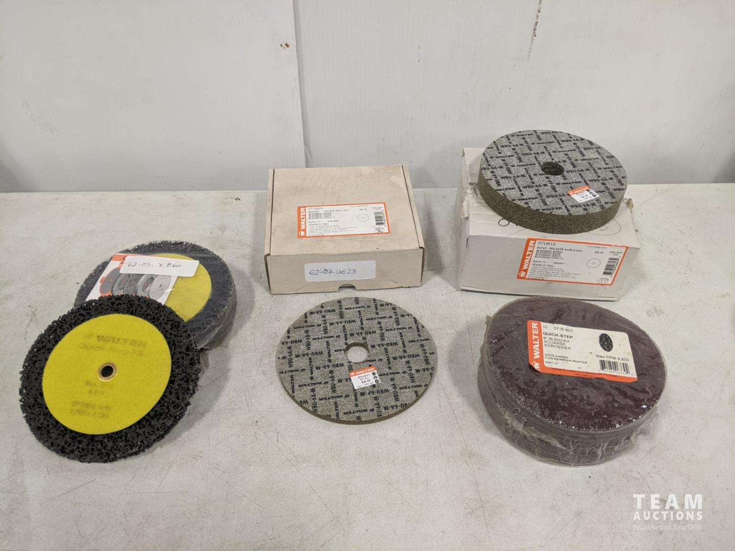 (10) 6 inch coarse Blendex discs, (3) 6 inch course discs, (4) 6 inch x 1/4 inch grinding wheels, (3) 6 inch x 1 inch grinding wheels