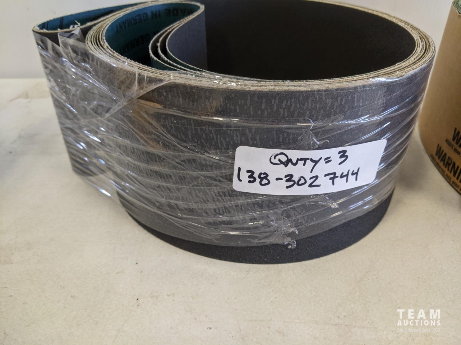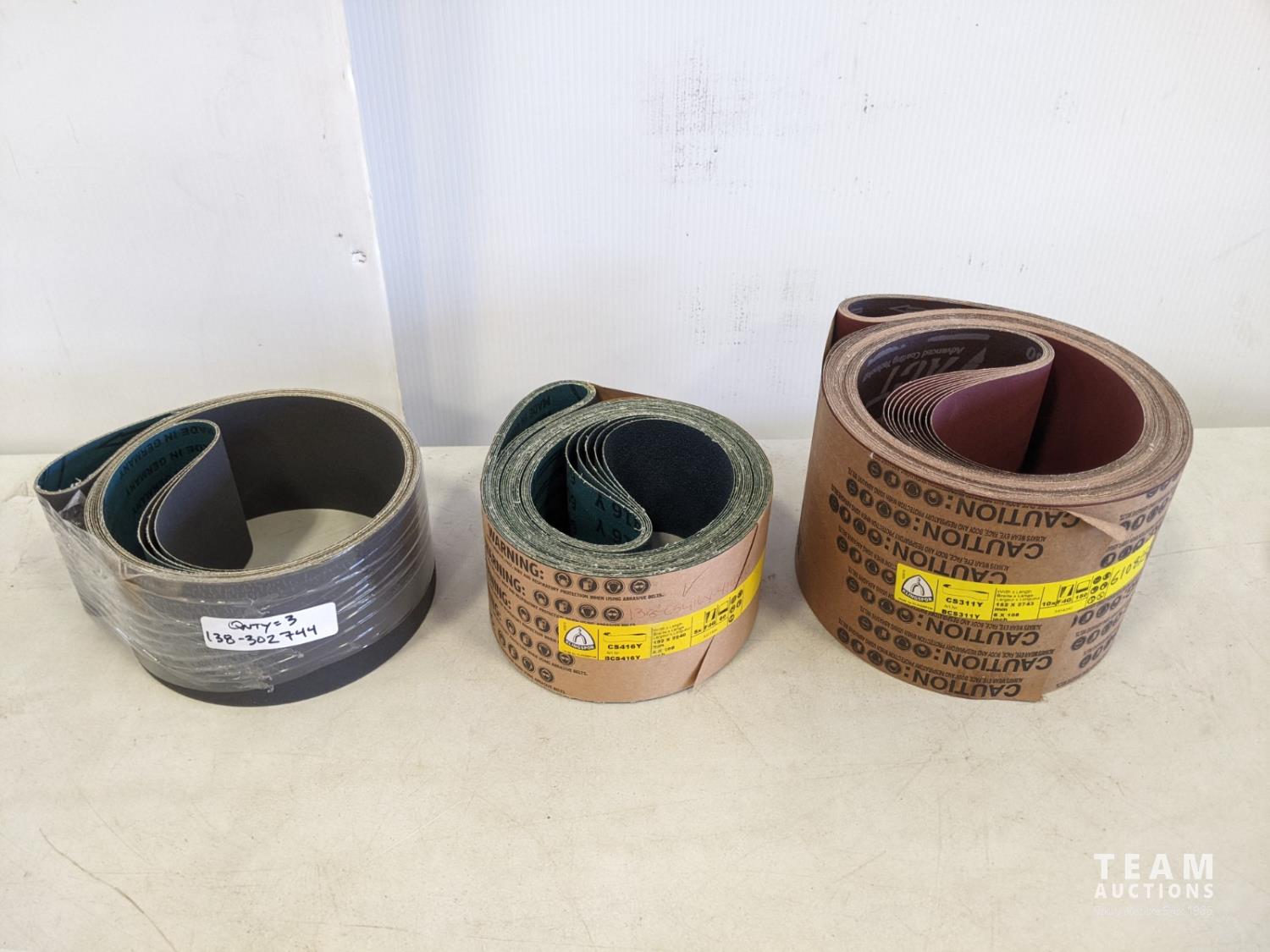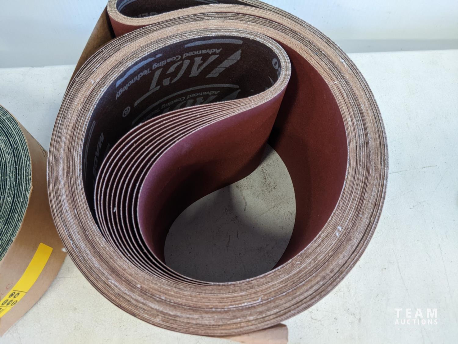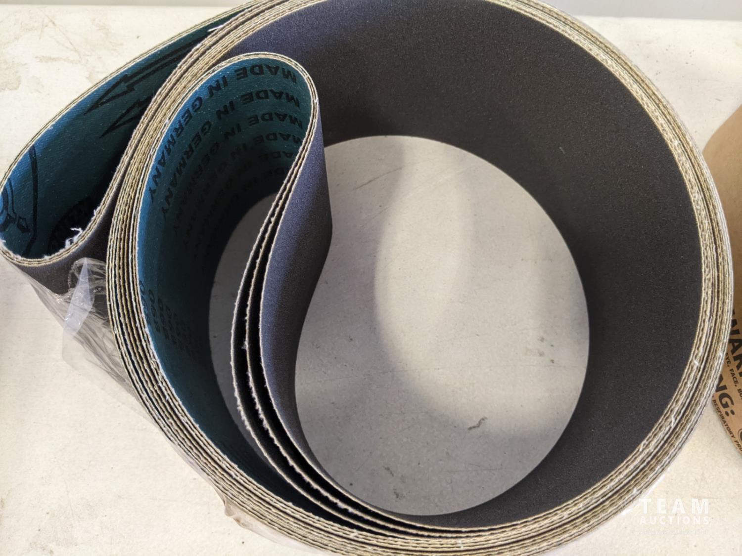 (10) 6 inch x 108 inch 150 grit and (5) 4 inch x 100 inch 60 grit and (3) 1-1/8 inch x 21 inch 120 grit