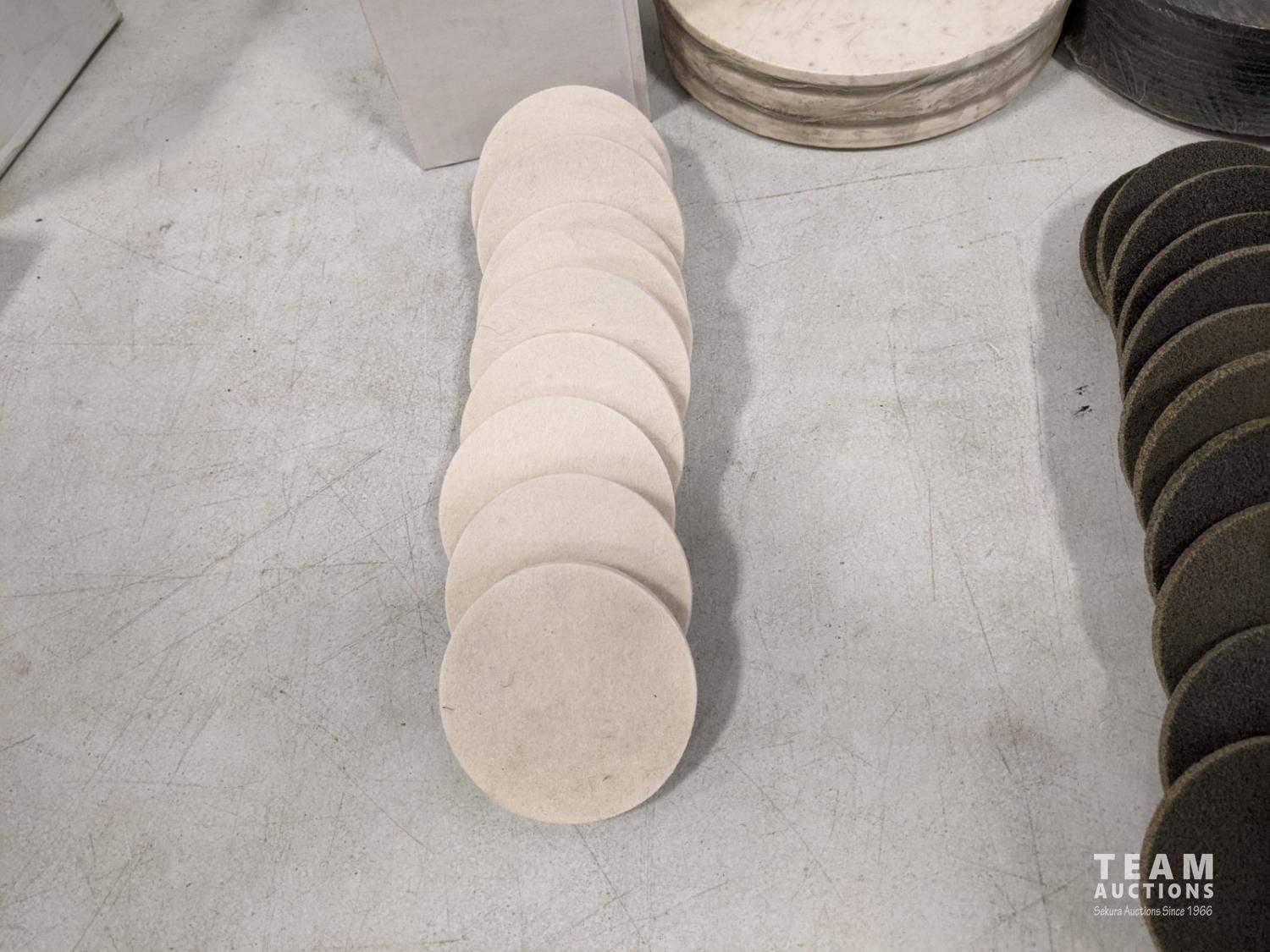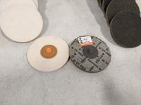 (11) 3 inch screw end abrasives, (11) 3 inch twist felt discs, (5) 7 inch felt discs, (13) 7 inch fine blue discs