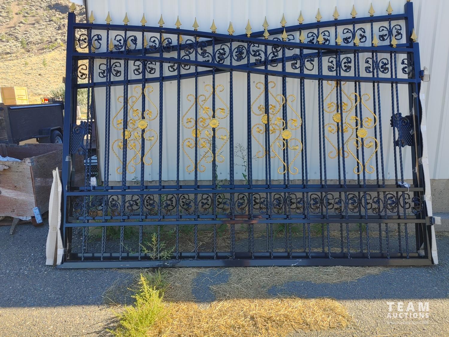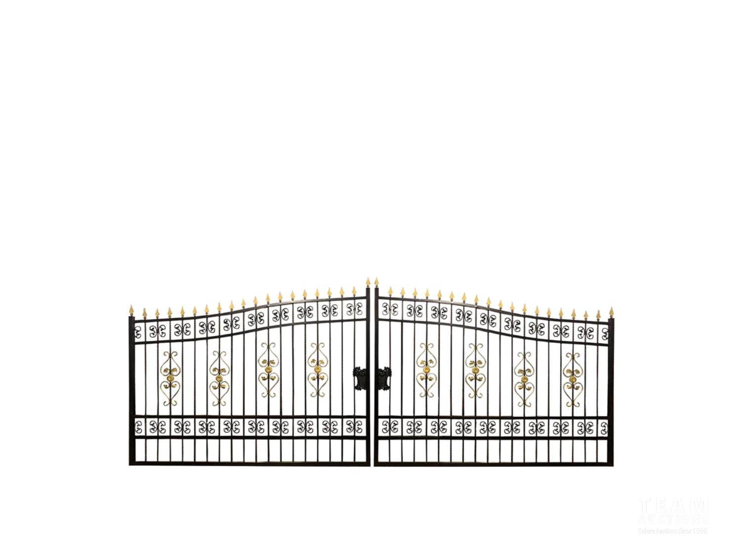20 ft bi-parting deluxe wrought iron ornamental gate, forged steel, golden decoration, hinges included